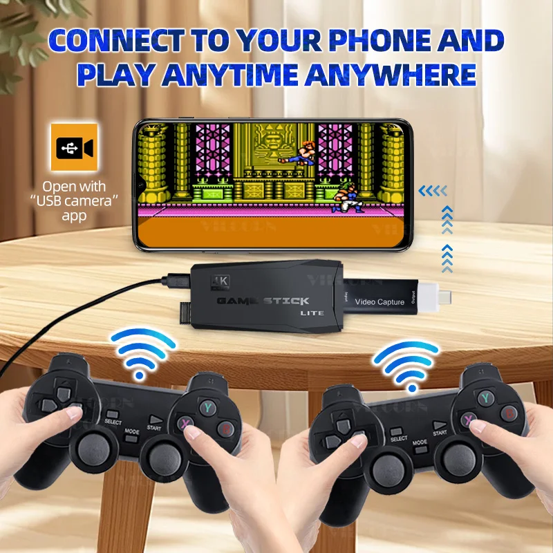 【Salida de teléfono Android opcional】 Consola de videojuegos M8 4K Game Stick para PS1 SNES SEGA MAME 15 Emulator 40000+ de juegos Máquina retro