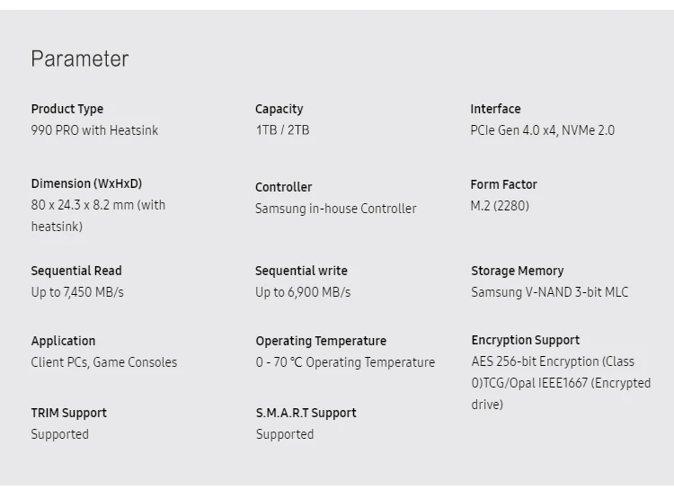 Comprar SAMSUNG 990 PRO con disipador de calor SSD 1TB 2TB 4TB PCIe Gen 4.0x4 Unidad de estado sólido NVMe 2.0 M.2 2280 SSD interno para computadora portátil de escritorio