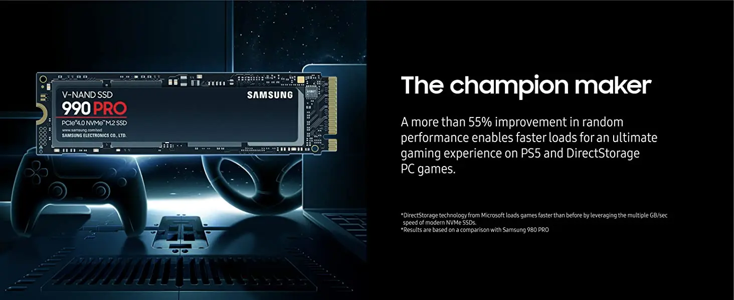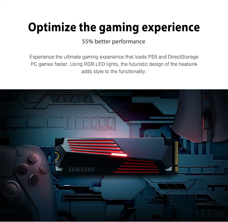 Una mejora de más del 55% en el rendimiento aleatorio1 permite cargas más rápidas para una mejor experiencia de juego en juegos de PS5 y DirectStorage para PC.