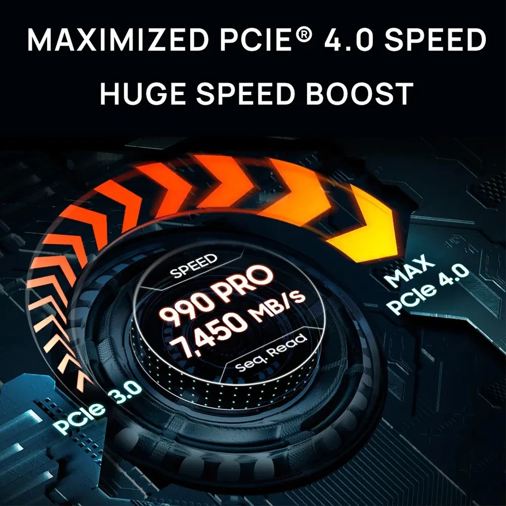 Obtenga velocidades de lectura/escritura aleatorias que son un 40%/55% más rápidas que el 980 PRO.Experimente IOPS de hasta 1400K/1550K, mientras que velocidades de lectura/escritura secuenciales de hasta 7450/6900 MB/s alcanzan cerca del rendimiento máximo de PCIe® 4.0.Vuele alto en juegos, edición de vídeo, modelado 3D, análisis de datos y más.