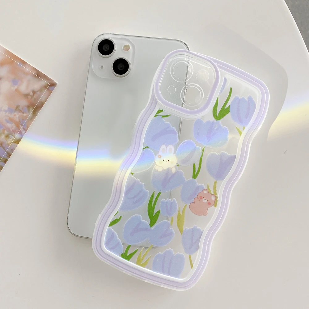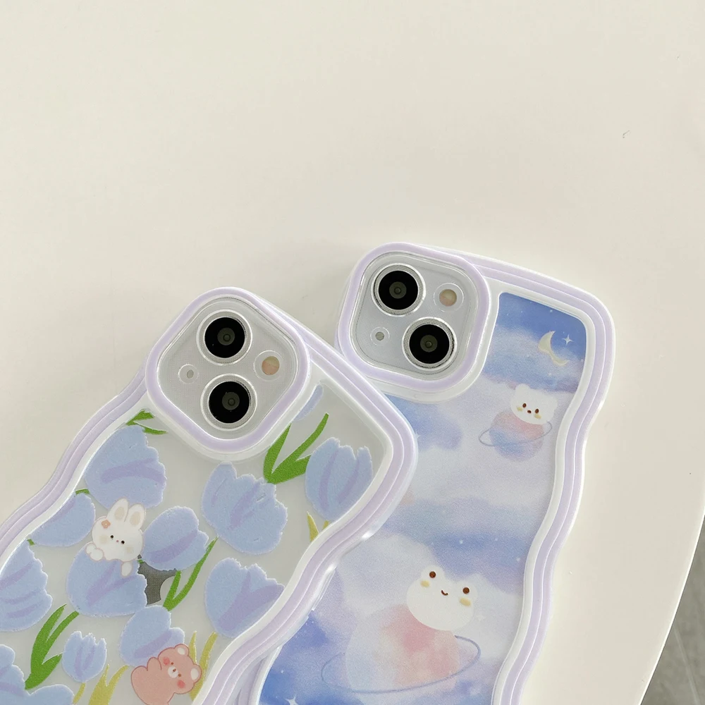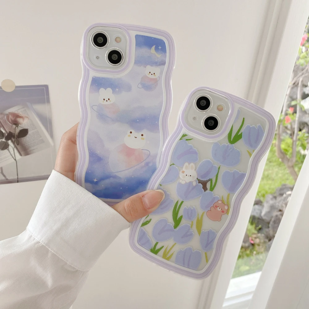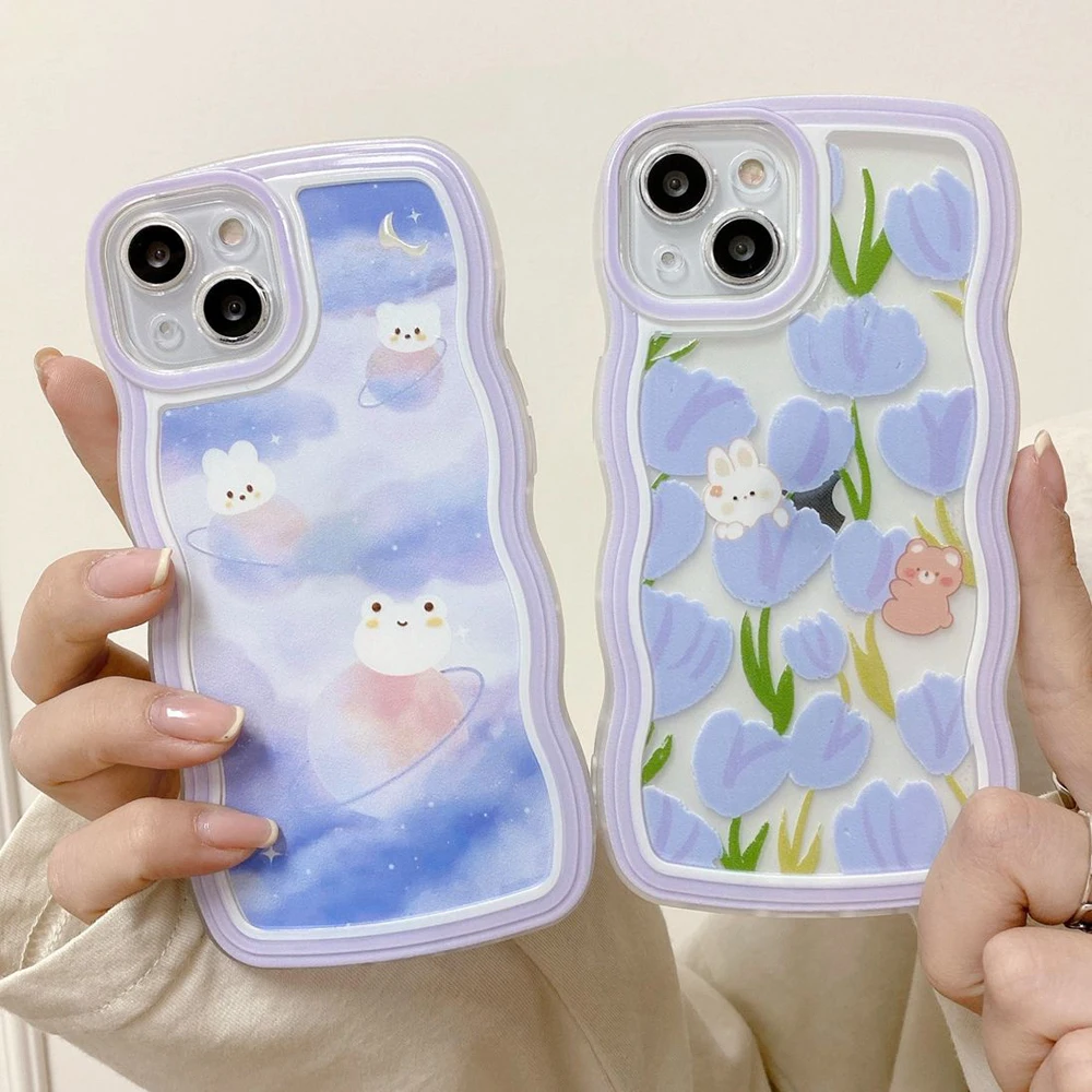 Comprar Para Samsung A14 5G funda Galaxy A20S A21S A22 M22 A22 5G A23 A24 A30 A20 M10S funda protectora de lente de teléfono lindo rizado ondulado