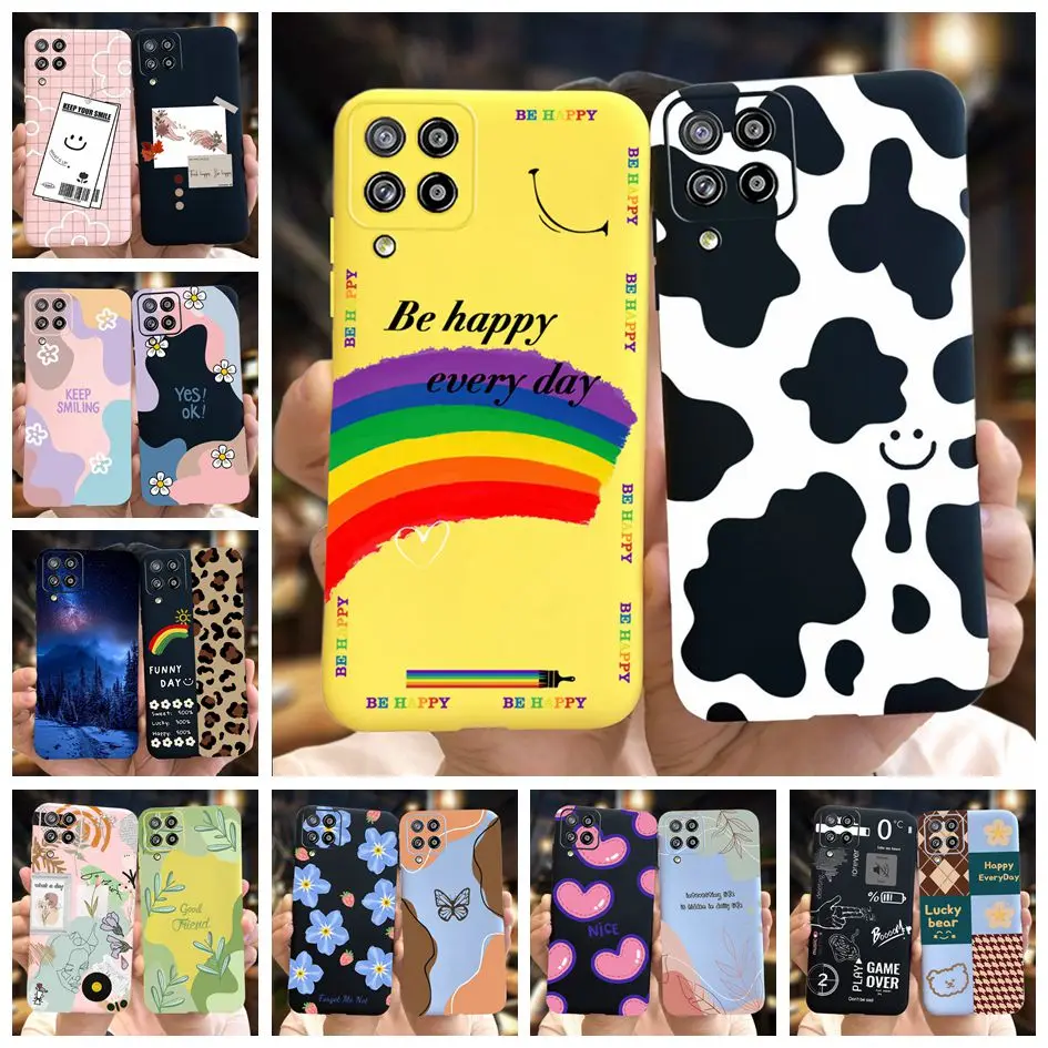 For Samsung A22 Case A225 SM-A225F Cartoon Cute Cow Coque Matte Cover For Samsung Galaxy M22 F22 M 22 A 22 4G 5G SM-A226B Fundas