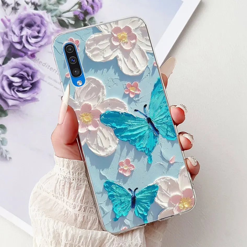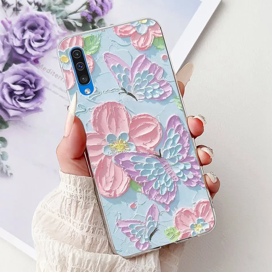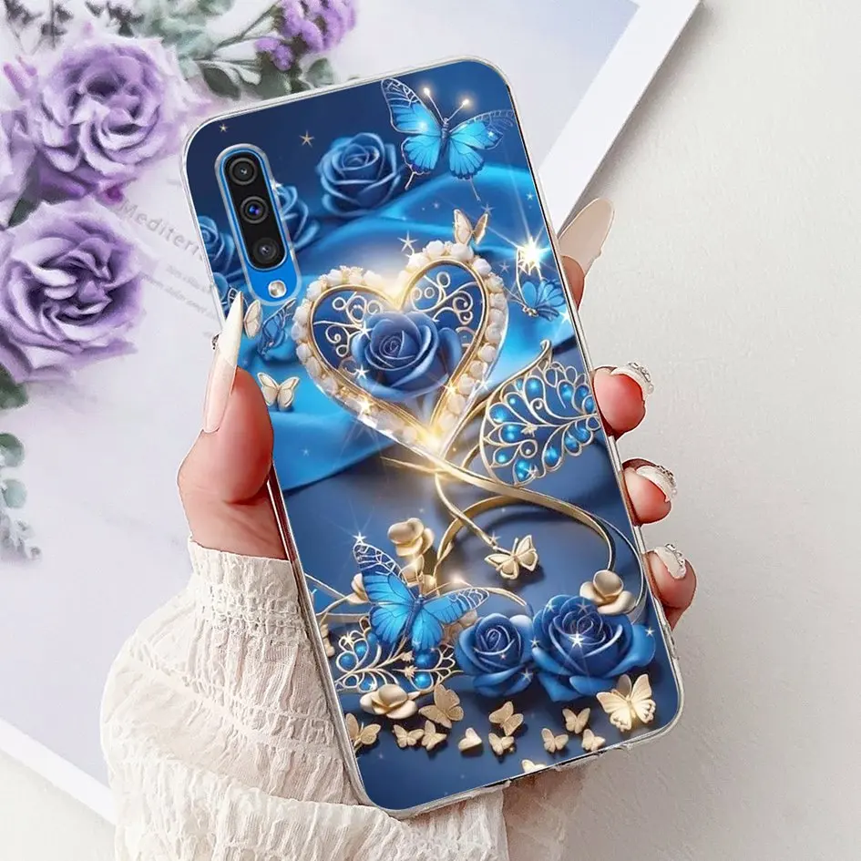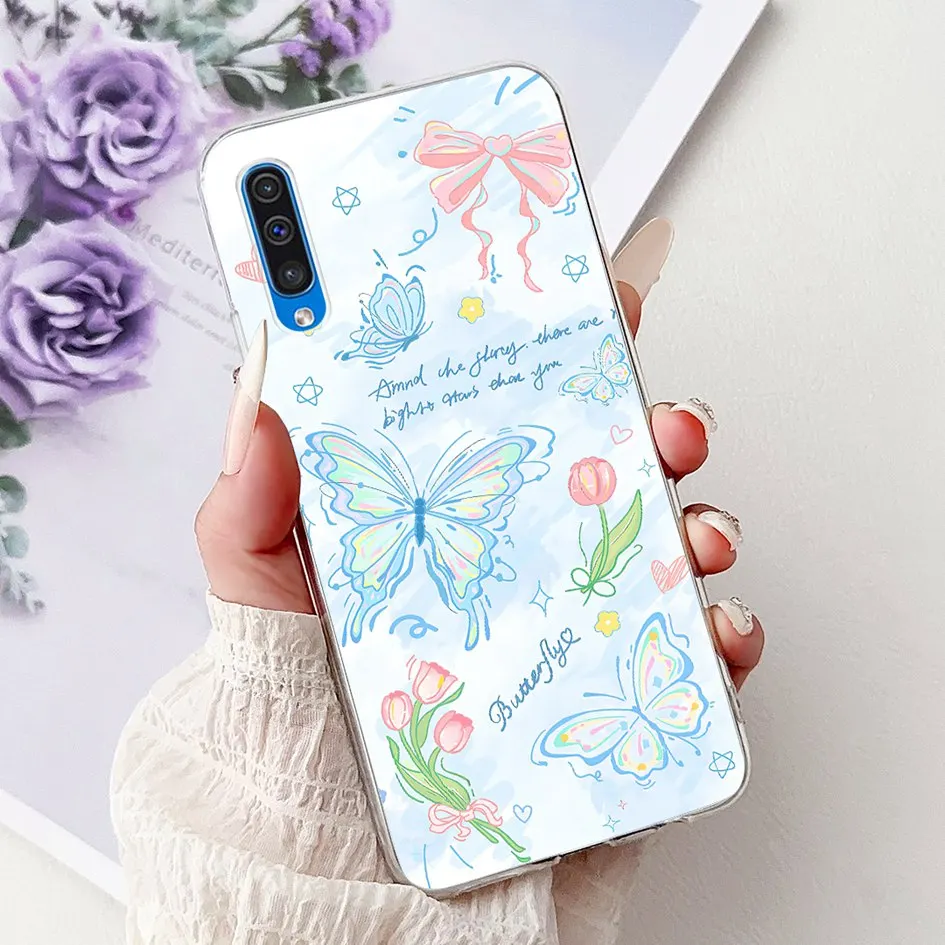 Comprar Para Samsung A50 A70 Funda moda flor suave transparente silicona teléfono contraportada para Samsung Galaxy A30S A50S Funda A 50 A505F Shell