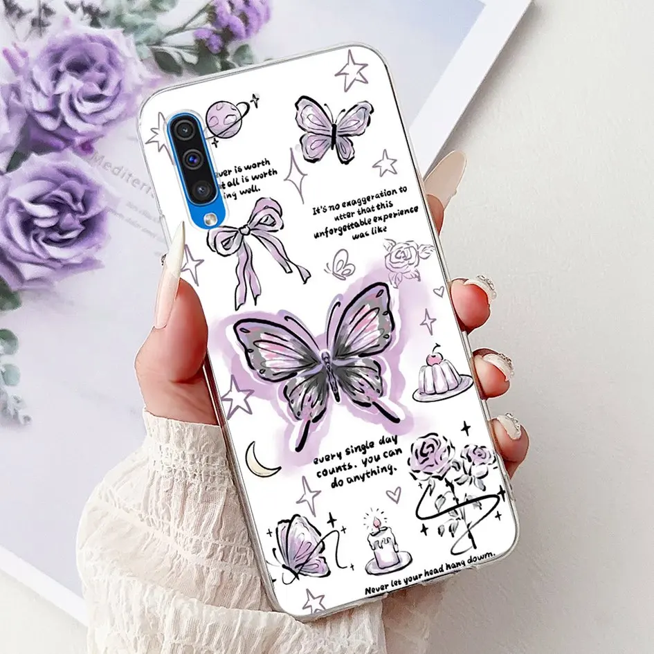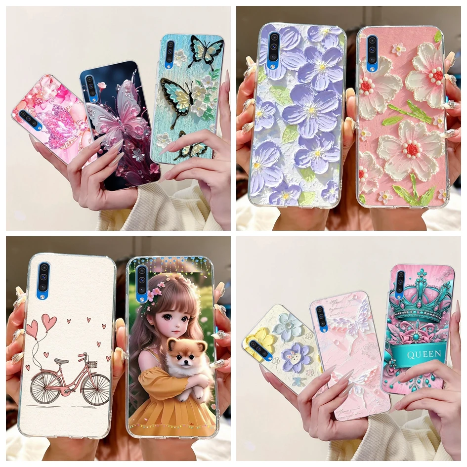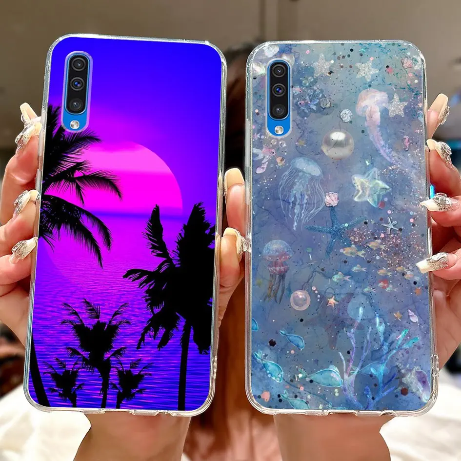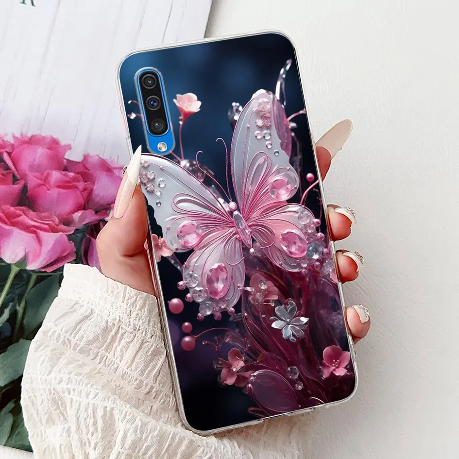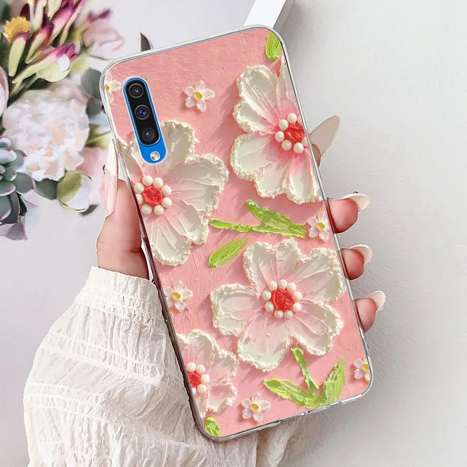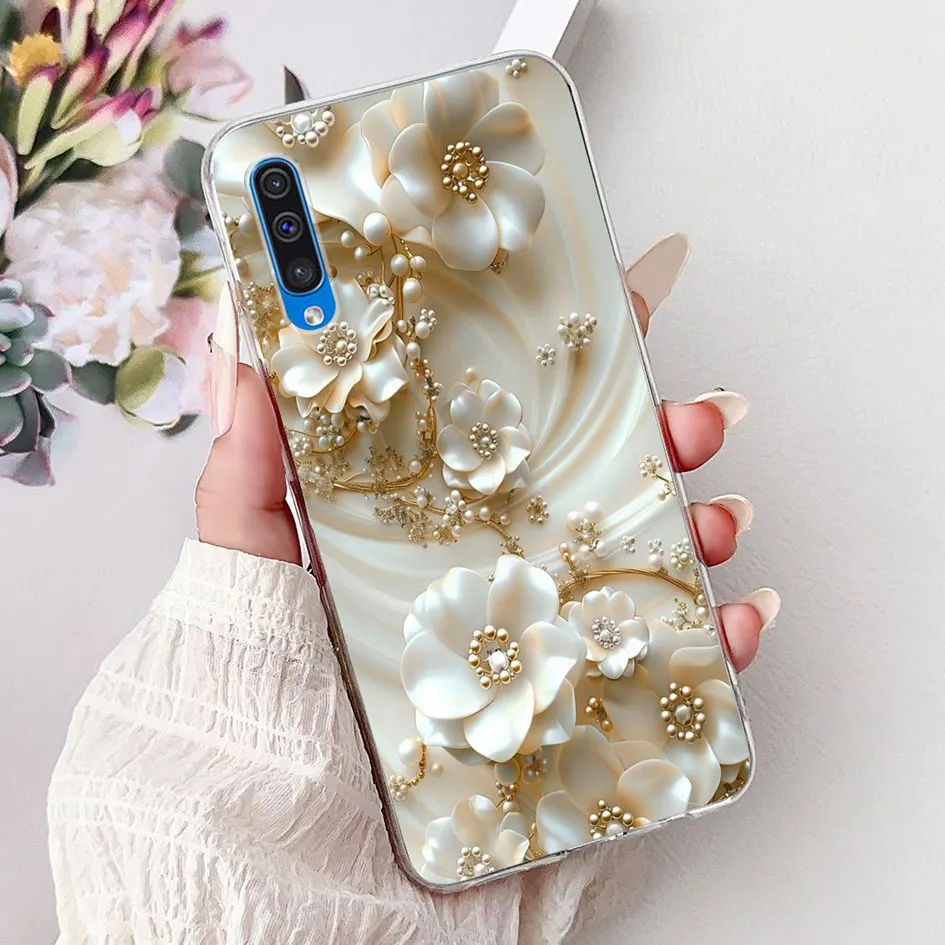 Para Samsung A50 A70 funda de moda flor suave transparente funda trasera de teléfono de silicona para Samsung Galaxy A30S A50S Funda A 50 A505F carcasa