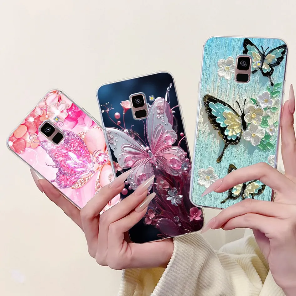 Para Samsung A8 Plus 2018, funda A730 A730F, funda de silicona suave y transparente con mariposa a la moda para Samsung Galaxy A8 2018 A530F