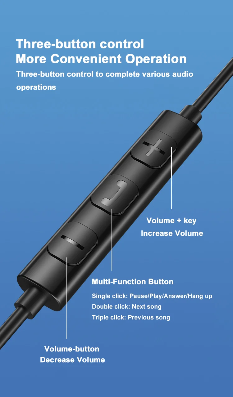 El cable está reforzado para una mayor durabilidad. Admite volumen+/-, último/siguiente seguimiento, pausa, respuesta/fin/rechazar llamada para liberar tus manos al escuchar música, tener llamadas telefónicas mientras conduces, caminas, haces ejercicio, trabajas, compras, etc.