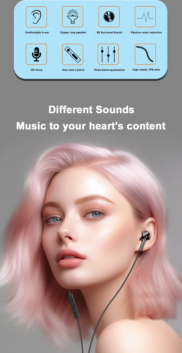 El diseño ergonómico intrauditivo ofrece un sonido más potente y claro, le permite tener llamadas telefónicas más claras, disfrutar de una experiencia de transmisión de música y juegos de excelente calidad.
