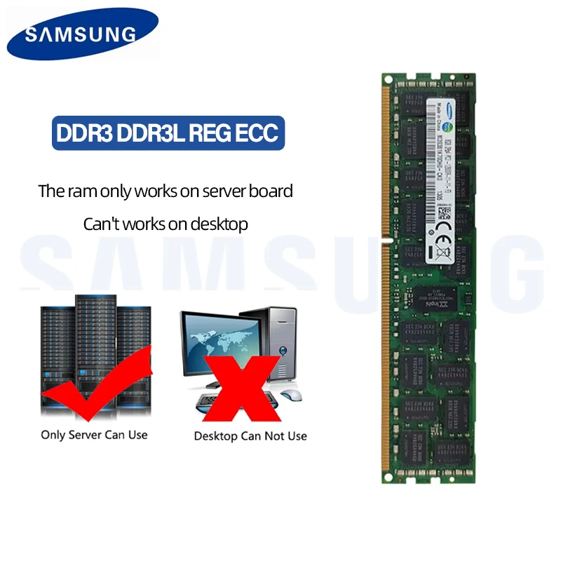 Comprar Samsung DDR3 DDR3L 4GB 8GB 16GB 32GB ECC REG Memoria de servidor 1066 1333 1600 1866MHz DIMM RAM Memoria registrada