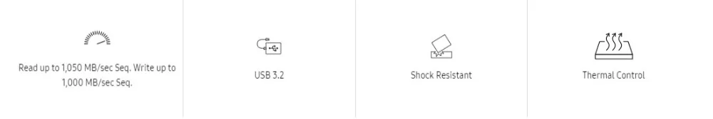 La transferencia masiva de bestanden binnen seconden conocido de ongelooflijke ritmo van USB 3,2 Gen 2 op de T7. De incluidas PCIe NVMe technologie levert razendsnelle sequentiële lees/schrijf snelheden tot 1.050/1.000 MB/s... respectievelijk... maken de T7 bijna twee keer zo snel als de vorige T5 modelo **