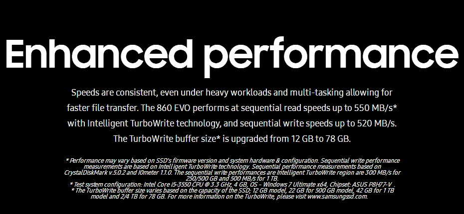 250G 500G 1TB 2TB 4TB Velocidad (ATTO):Velocidad de lectura secuencial: hasta 550 MB/s; Velocidad de escritura secuencial: hasta 520 MB/s.