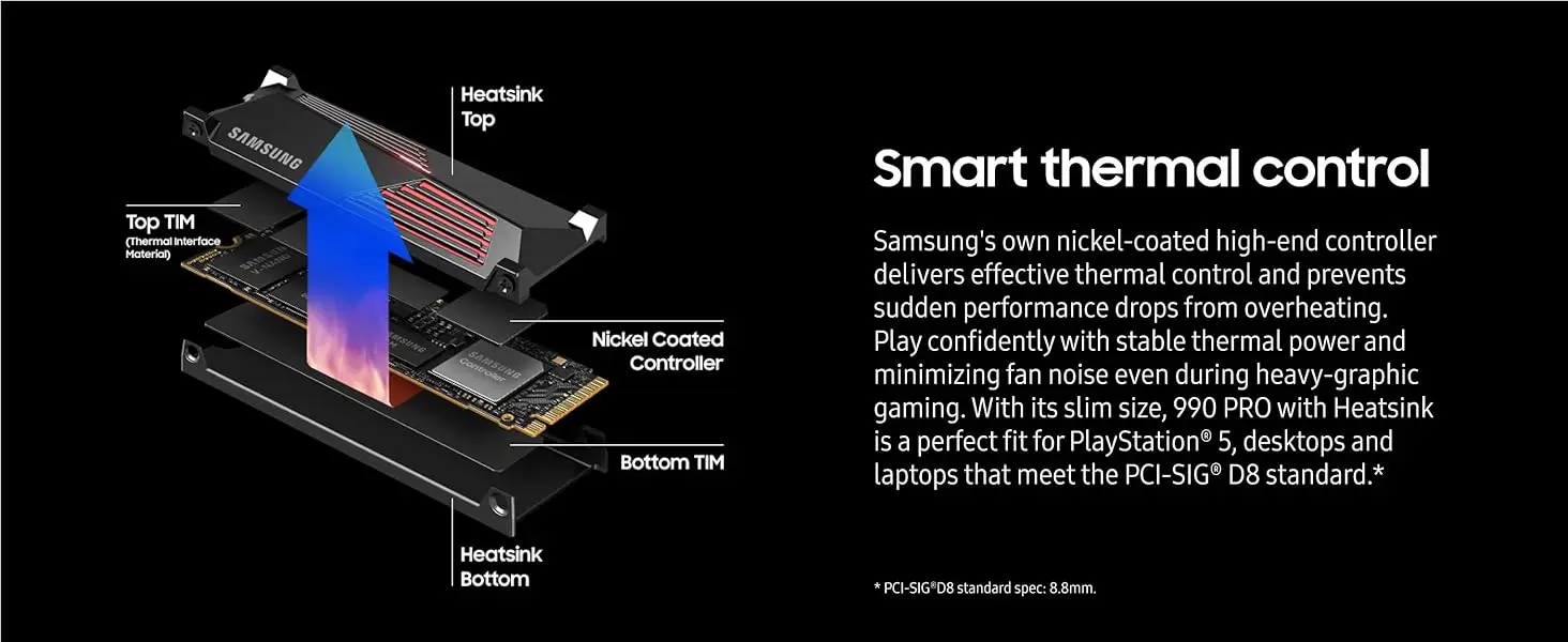 Comprar SAMSUNG-disco duro interno de estado sólido 990 PRO con disipador de calor SSD 1TB 2TB, PCIe Gen4 M.2 2280, Compatible con PlayStation 5