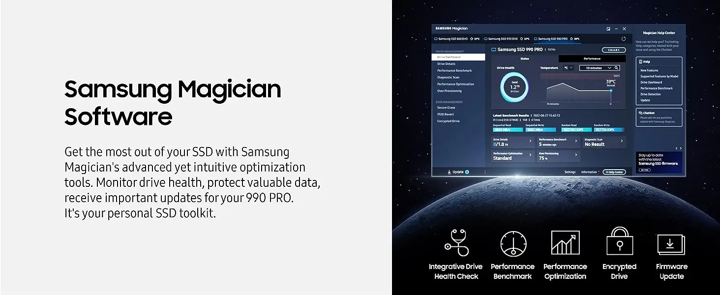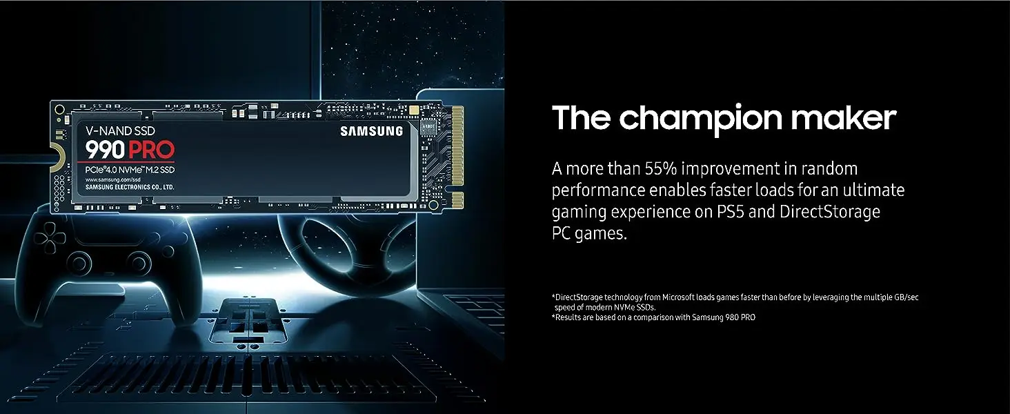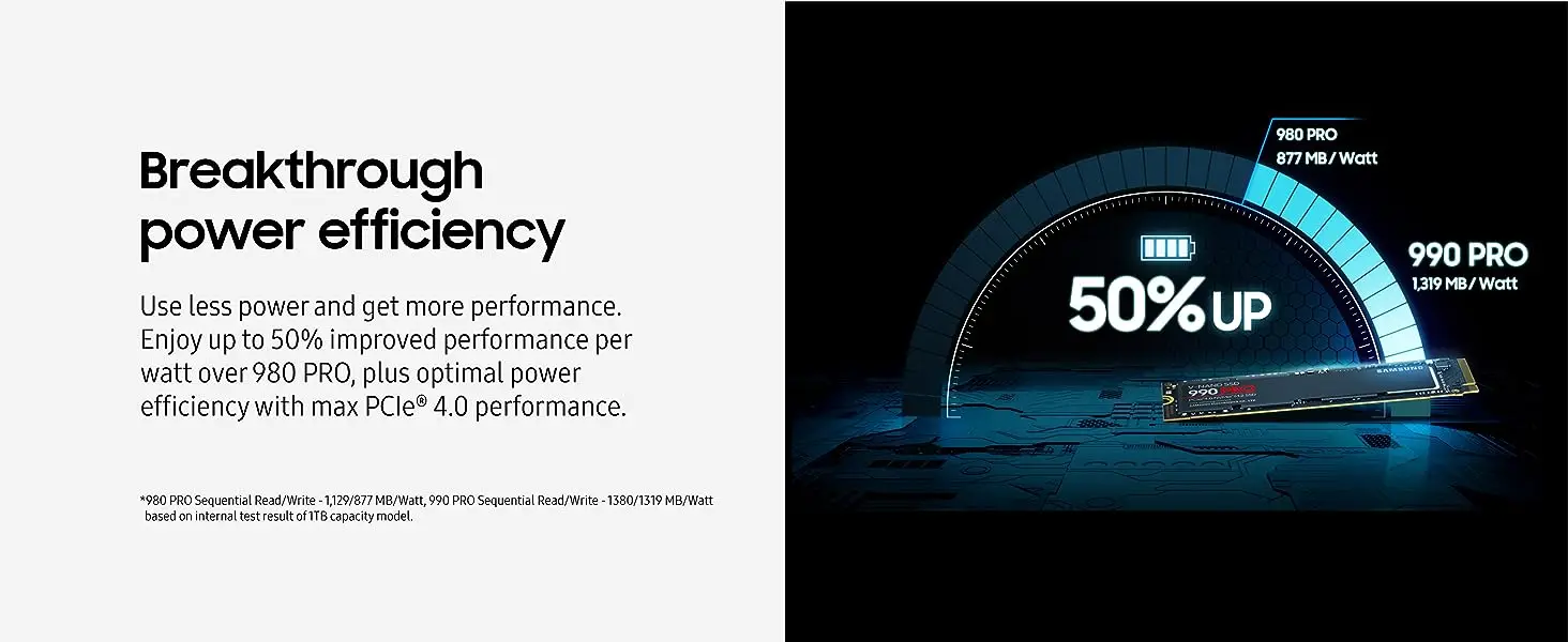 CONOCER A LA PRÓXIMA GEN: Considere esto como un código de trucos; Nuestro Samsung 990 PRO Gen4 SSD casi lo ayuda a alcanzar un rendimiento máximo con velocidades ultrarrápidas; ya sea un jugador Hardcore o un gurú de la tecnología, obtendrá una eficiencia energética construida para el jefe final