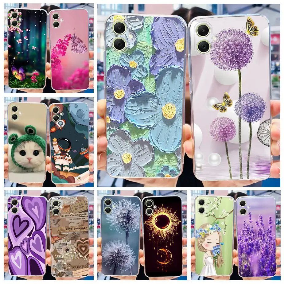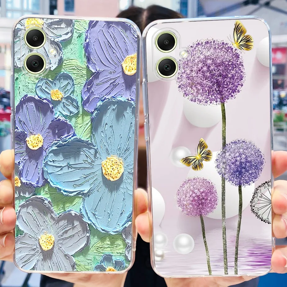 Funda para Samsung Galaxy A05, funda trasera pintada con flores de colores, funda de teléfono de silicona transparente para Samsung A05s A057F, parachoques