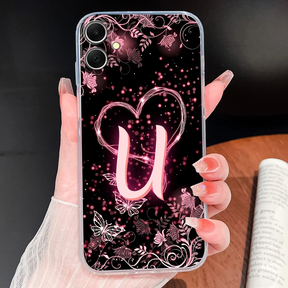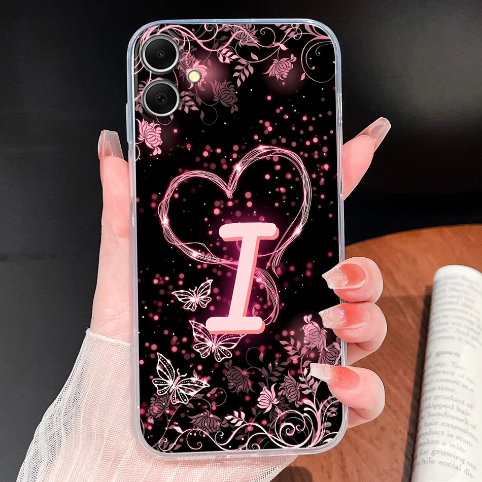 Para Samsung Galaxy A06 4G 5G funda de teléfono letras de corazón rosa suave TPU carcasa de silicona transparente ligera para Galaxy A 06