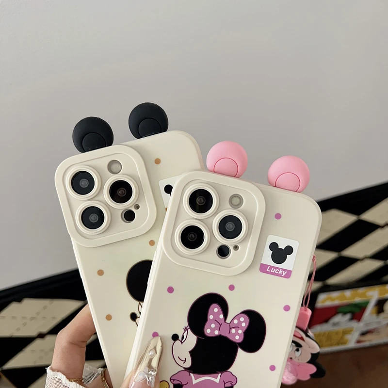 Para Samsung Galaxy A12 A11 A71 A51 A52 A22 A02s A32 A13 A53 A03s A04s A20s A33 A73 A23 asiento trasero Minnie funda con cuerda de soporte