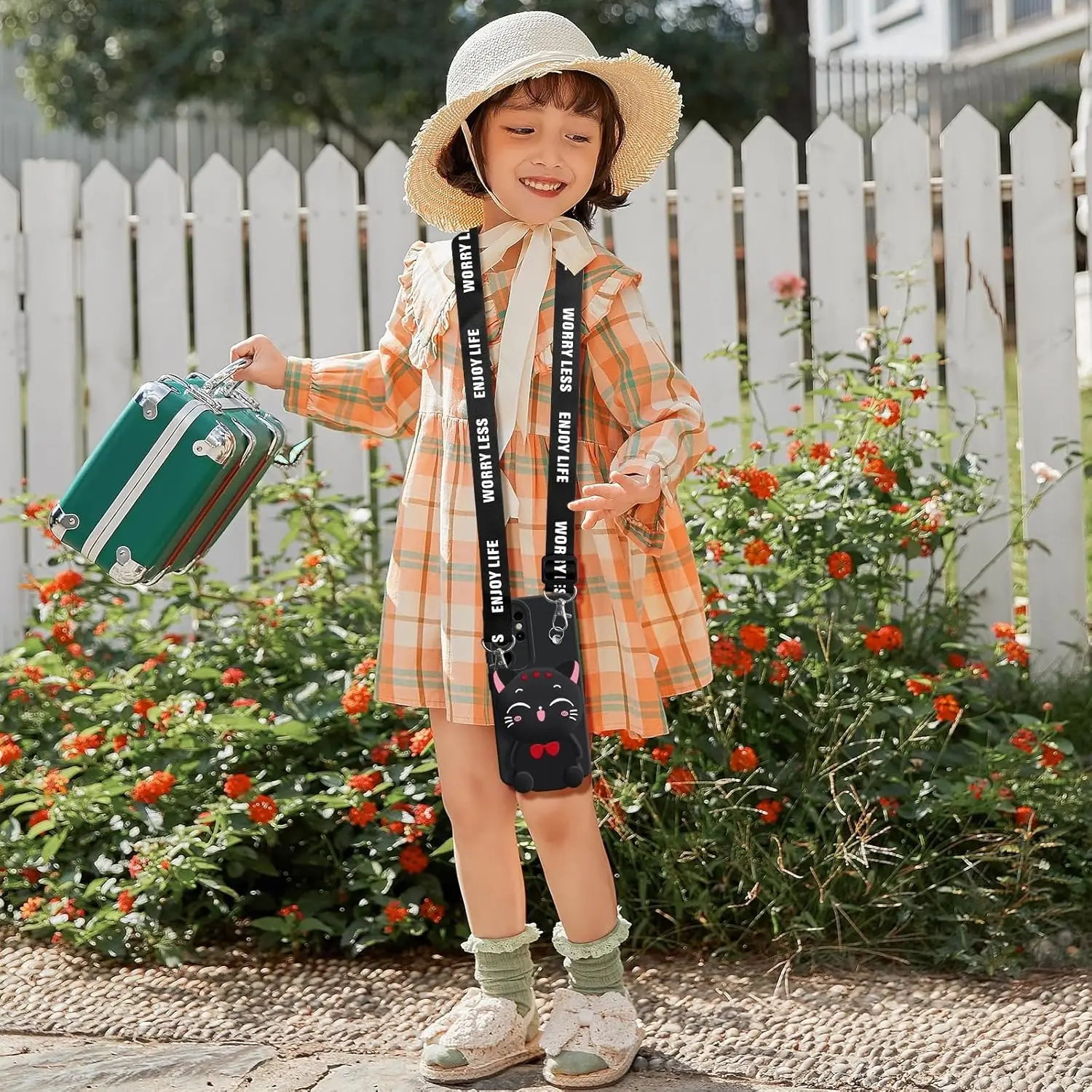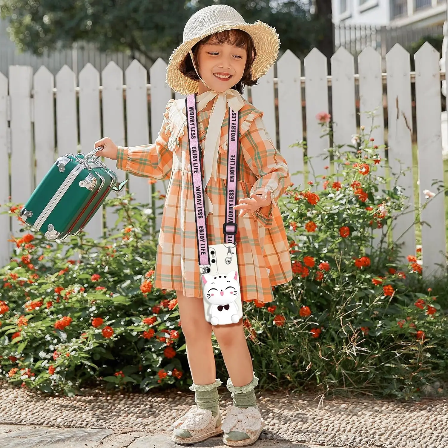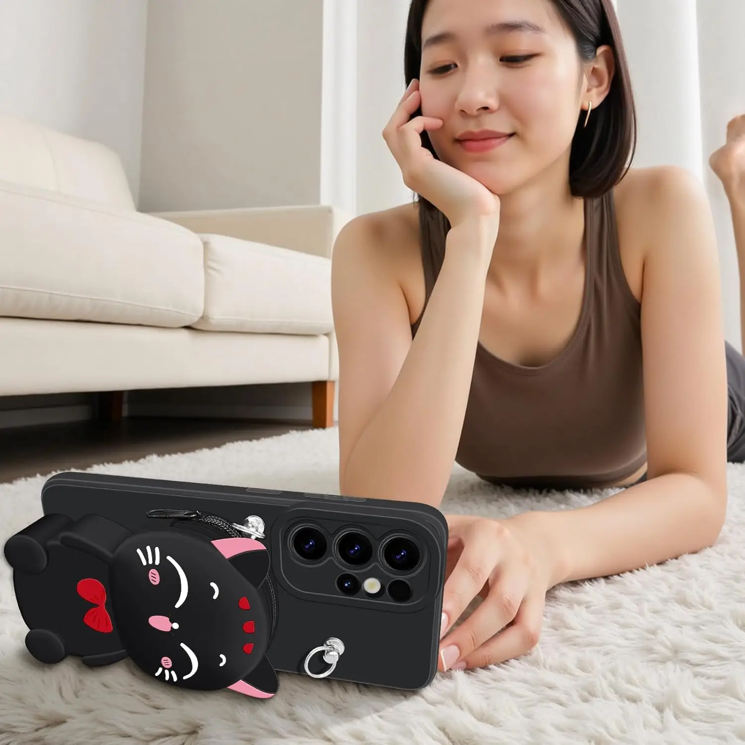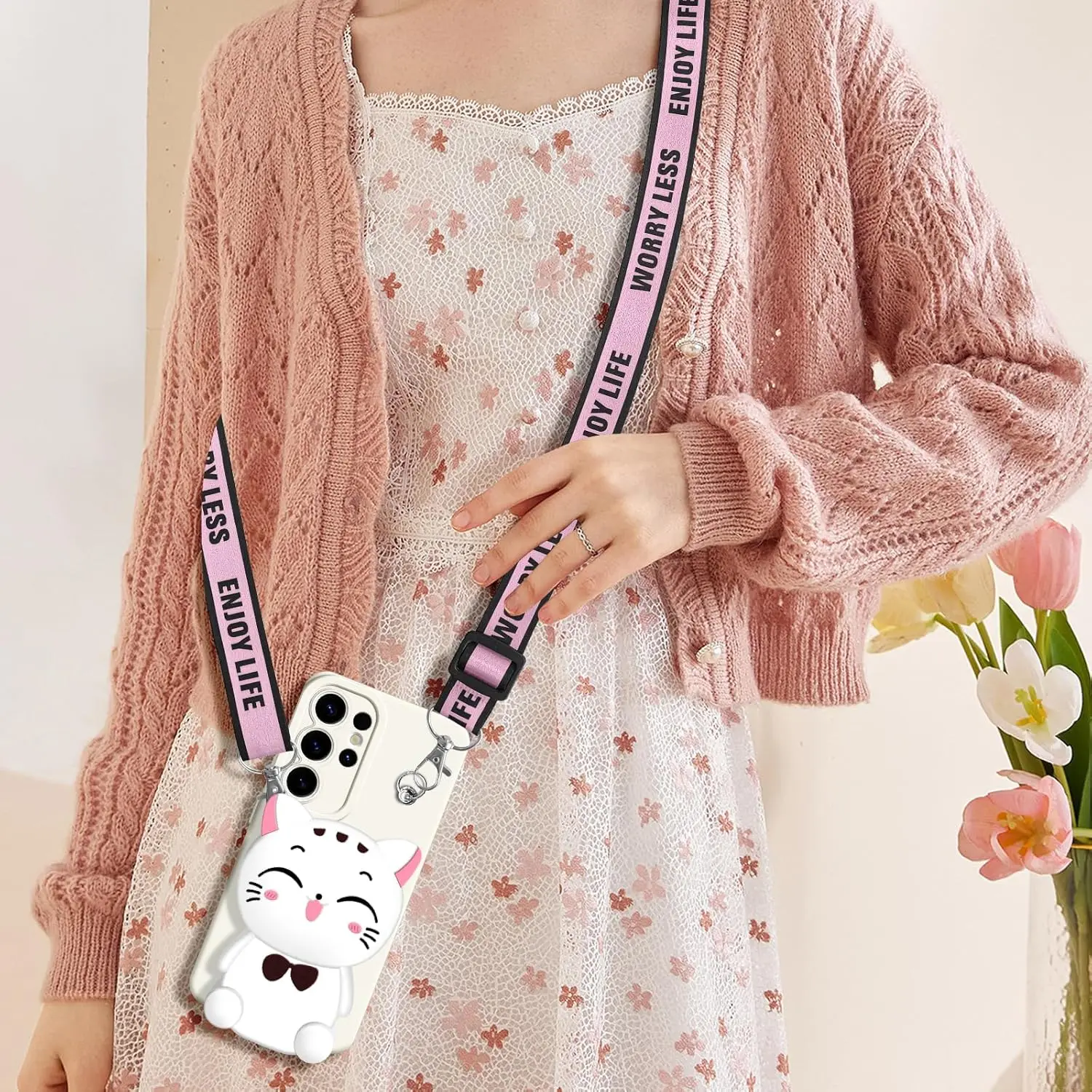 Para Samsung Galaxy A12 A11 A71 A51 A52 A22 A02s A32 A13 A53 A03s A04s A20s A33 A73 A23 Funda tipo billetera con gato de la suerte con cuerda