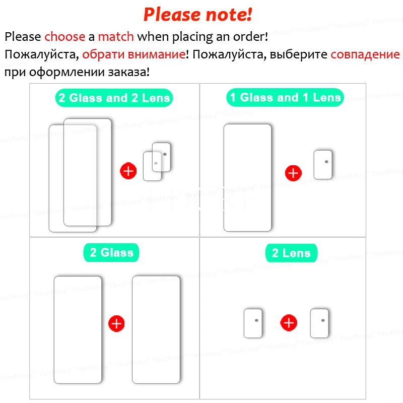 '2 vidrios y 2 lentes' son 2 vidrios frontales y 2 películas para lentes de cámara.