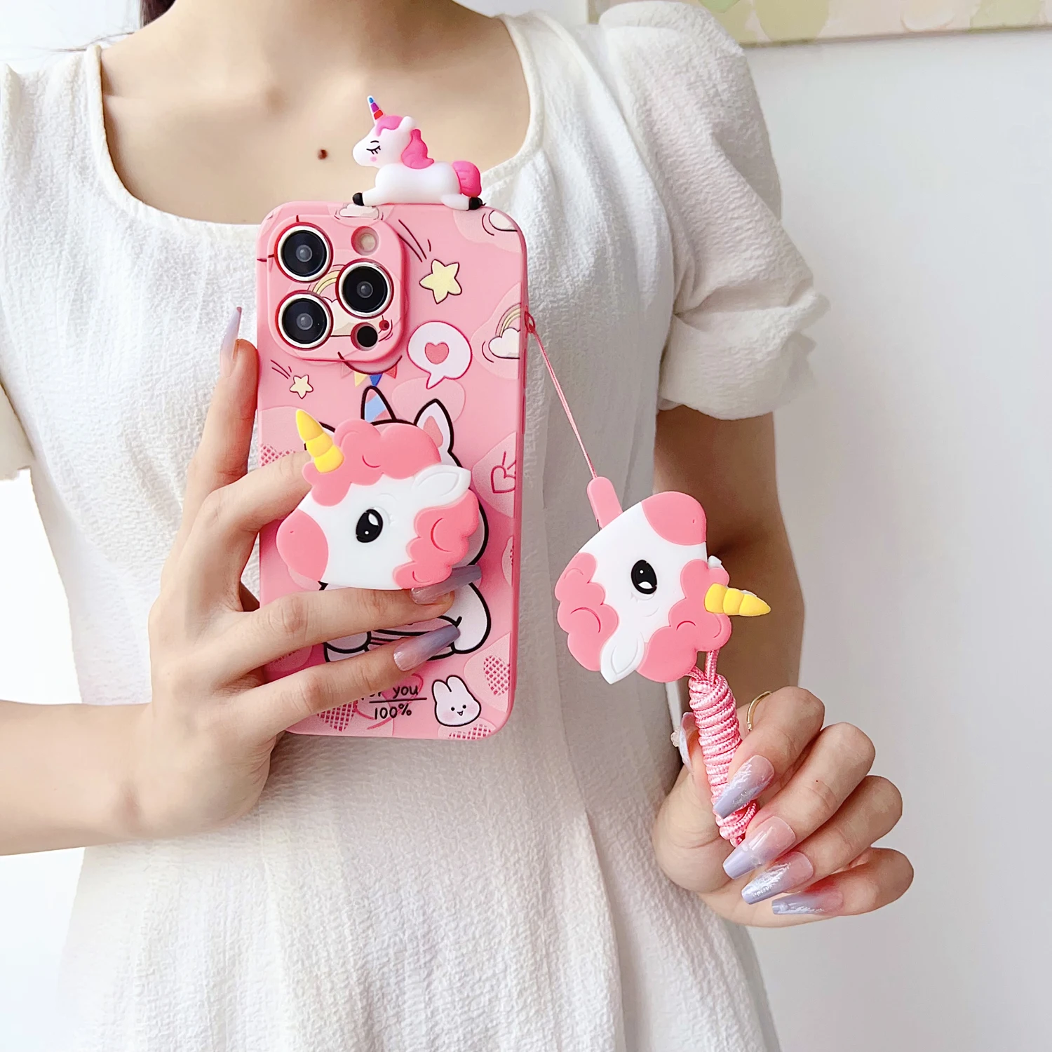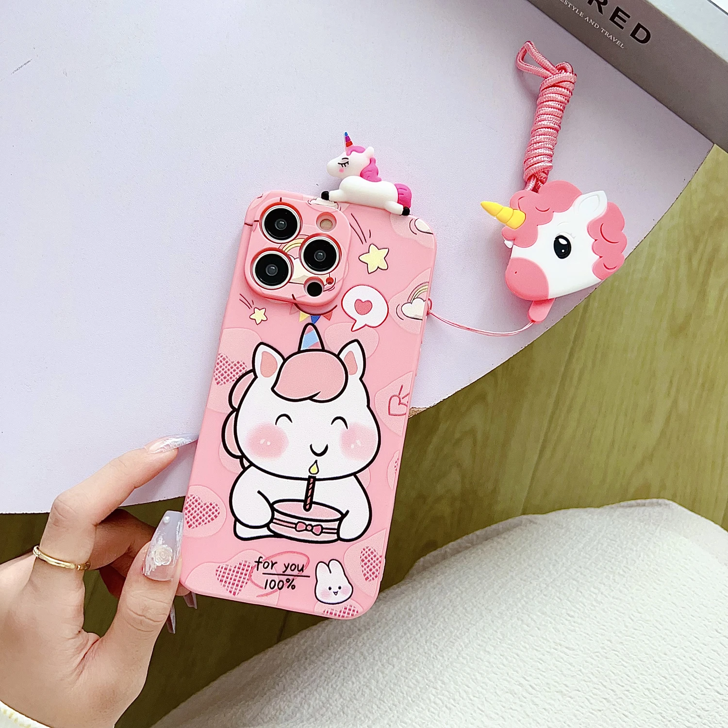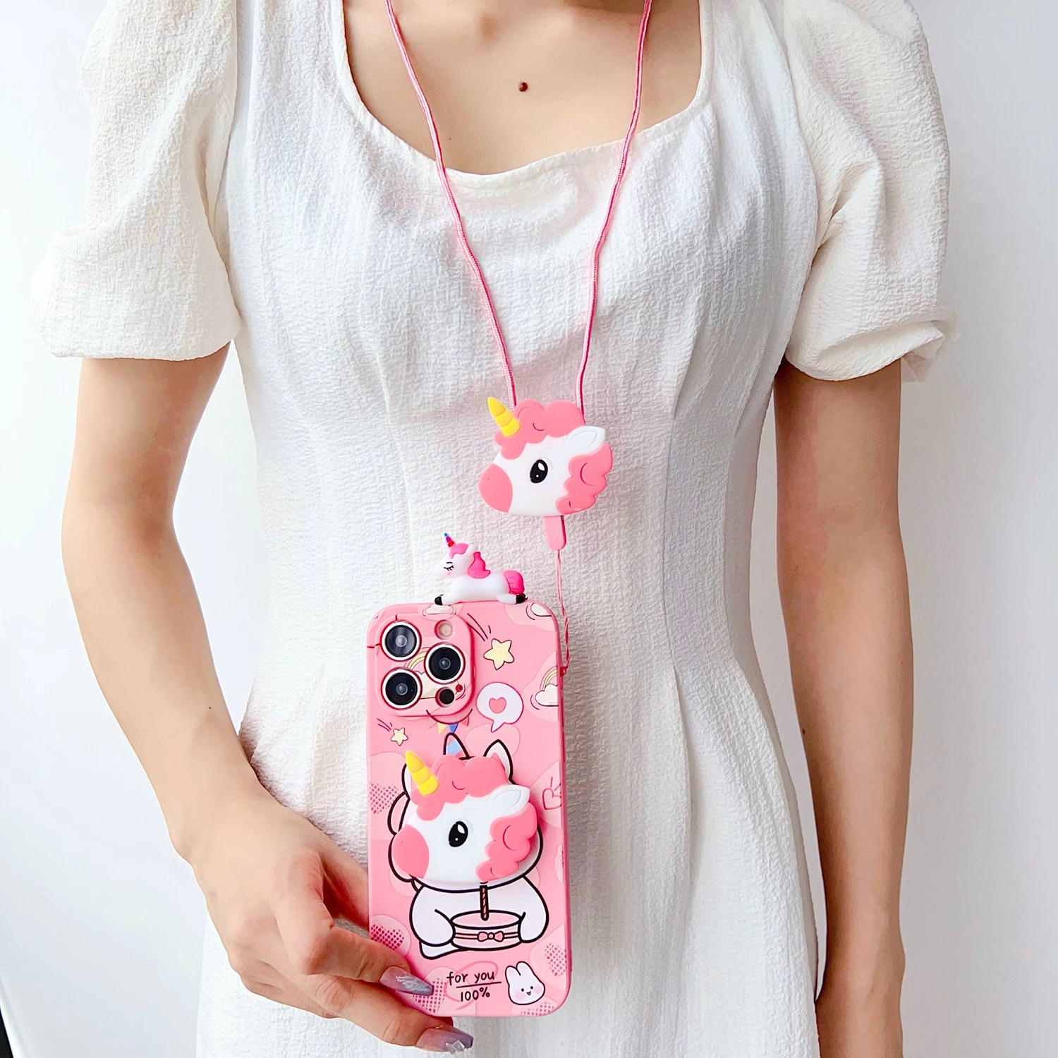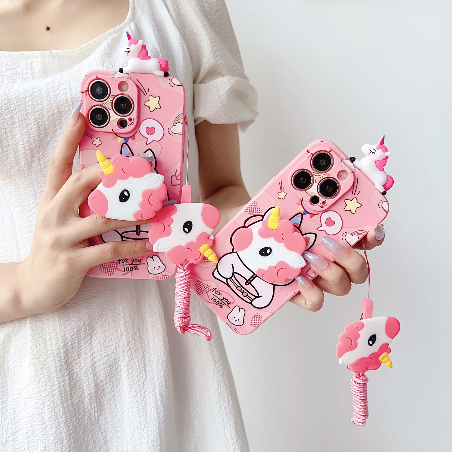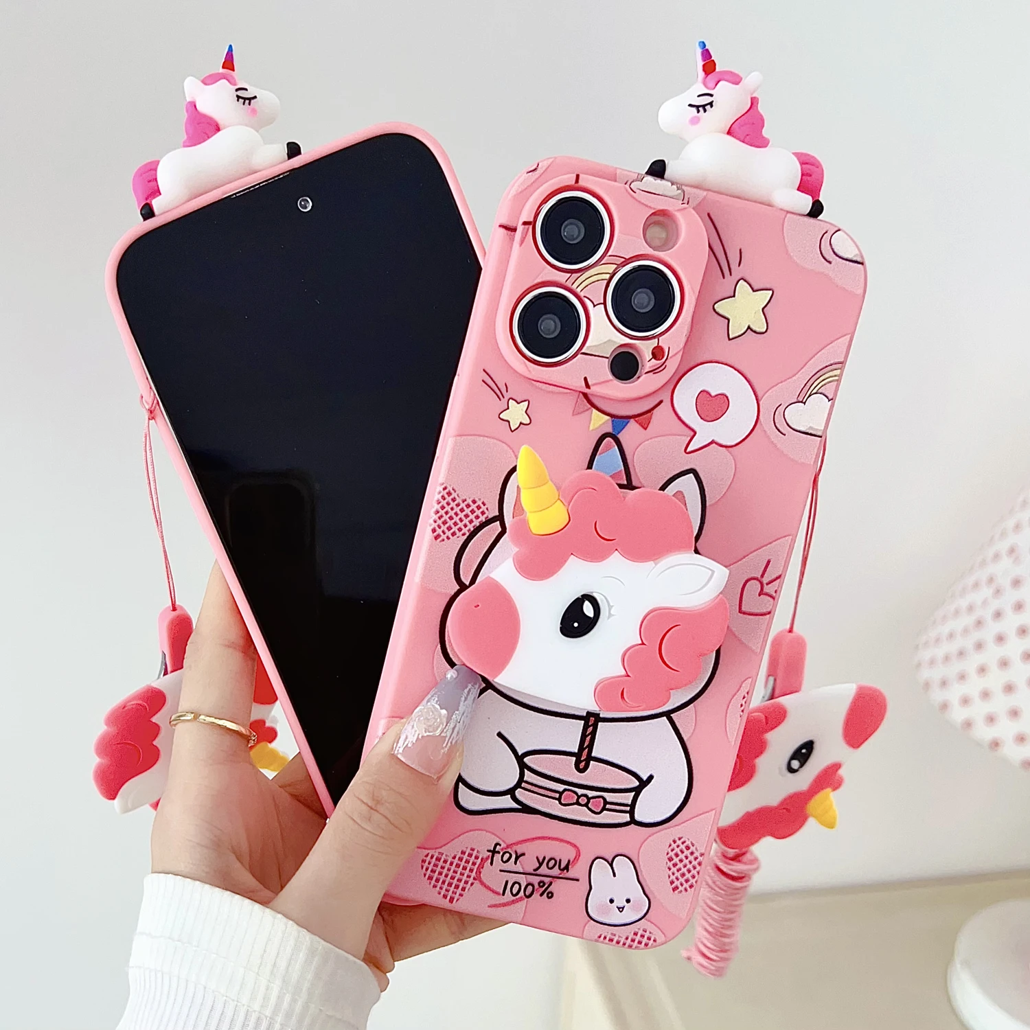 Para Samsung Galaxy A17 A07 A16 A06 A26 A56 A04E A05 A05s A15 A25 A35 A55 funda de unicornio feliz con cuerda de soporte