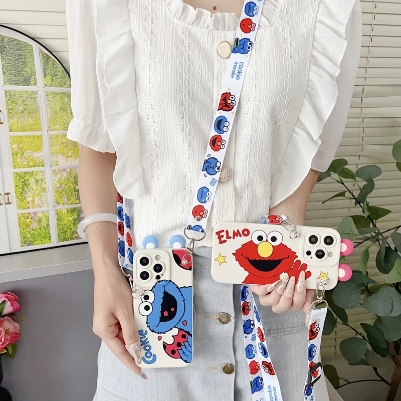 Para Samsung Galaxy A17 A07 A16 A06 A26 A56 A04E A05 A05s A15 A25 A35 A55 funda ELMO con cuerda de soporte