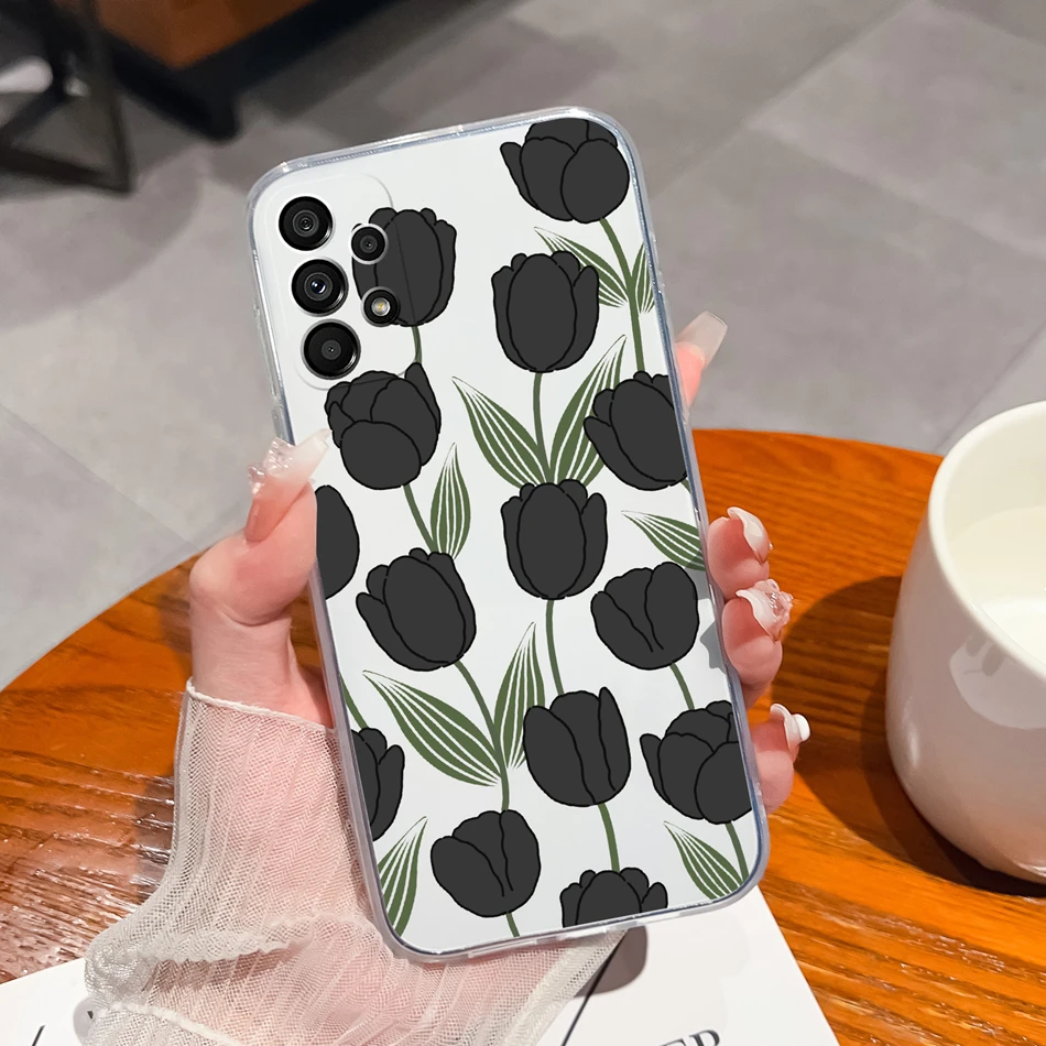 Para Samsung Galaxy A23 Funda de teléfono bonitas flores suave TPU silicona transparente parachoques para Samsung A 23 4G 5G Funda ligera - imagen 4