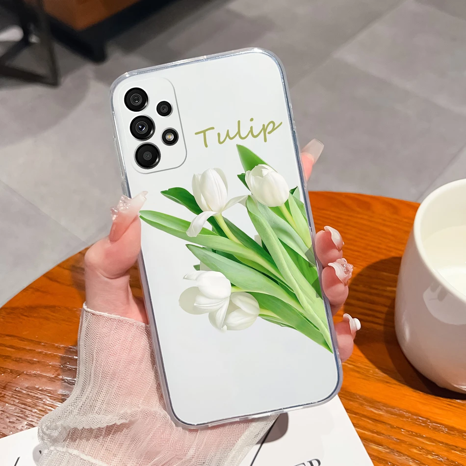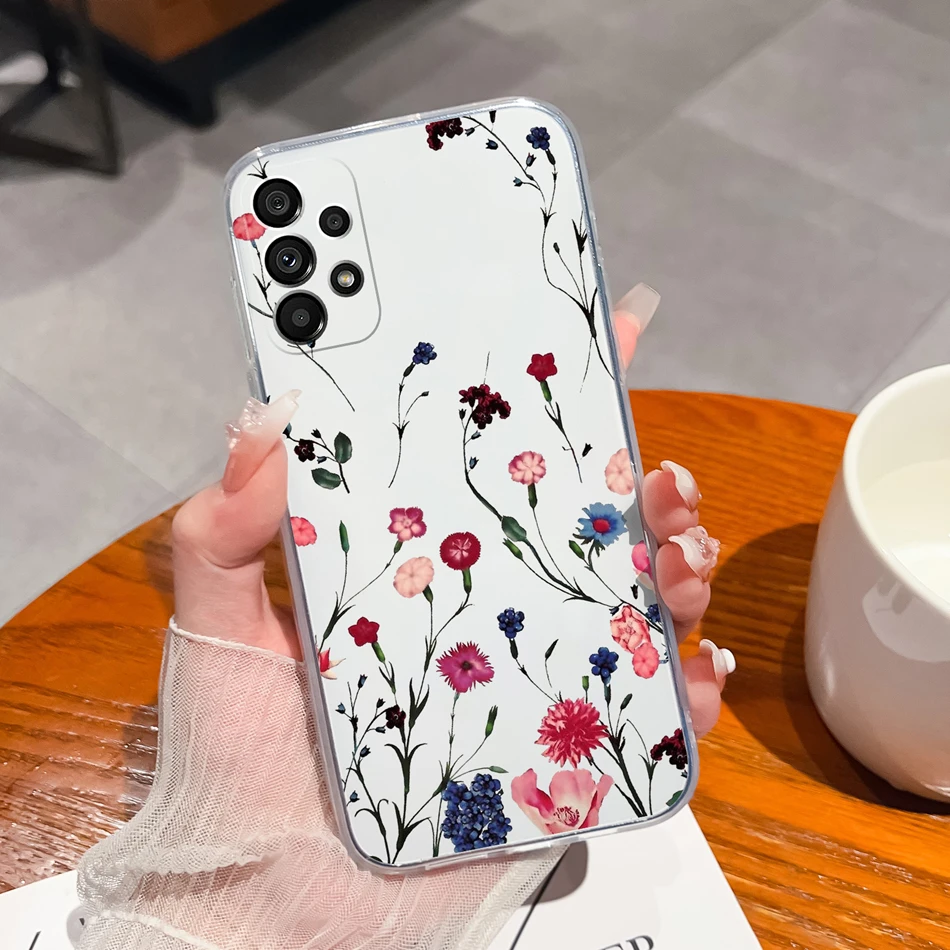 Para Samsung Galaxy A23 Funda de teléfono bonitas flores suave TPU silicona transparente parachoques para Samsung A 23 4G 5G Funda ligera