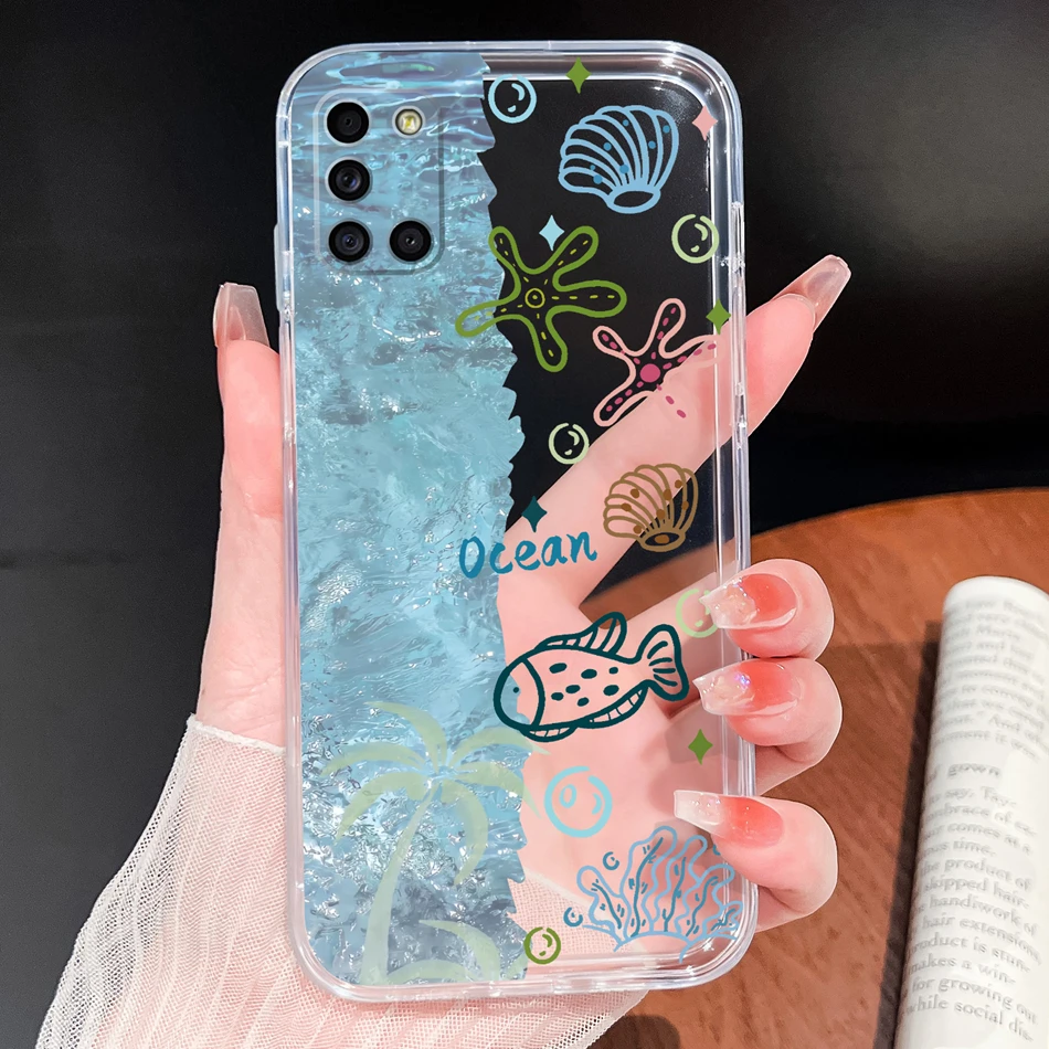 Para Samsung Galaxy A31 A51 A71 4G 5G Funda de teléfono patrones creativos de peces suave TPU transparente silicona ligera Funda
