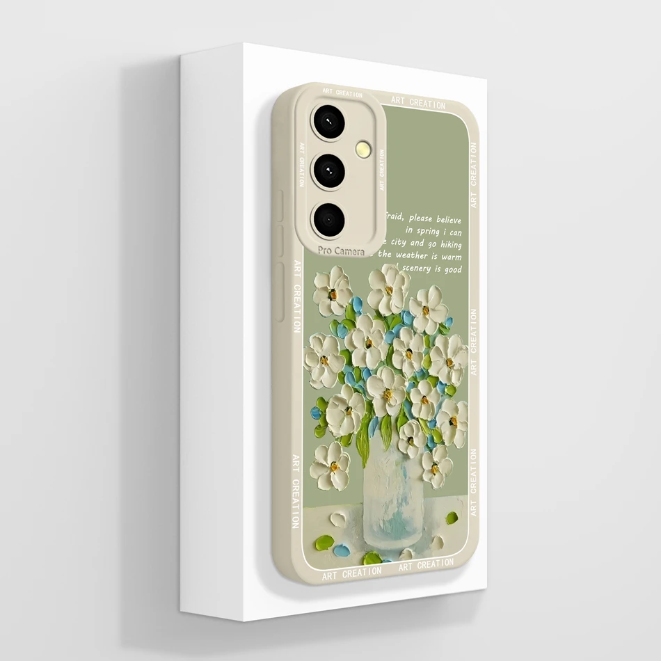 Comprar Para Samsung Galaxy A35 5G Funda pintura al óleo Funda de silicona líquida Funda trasera de teléfono para Samsung A 35 protección completa parachoques suave