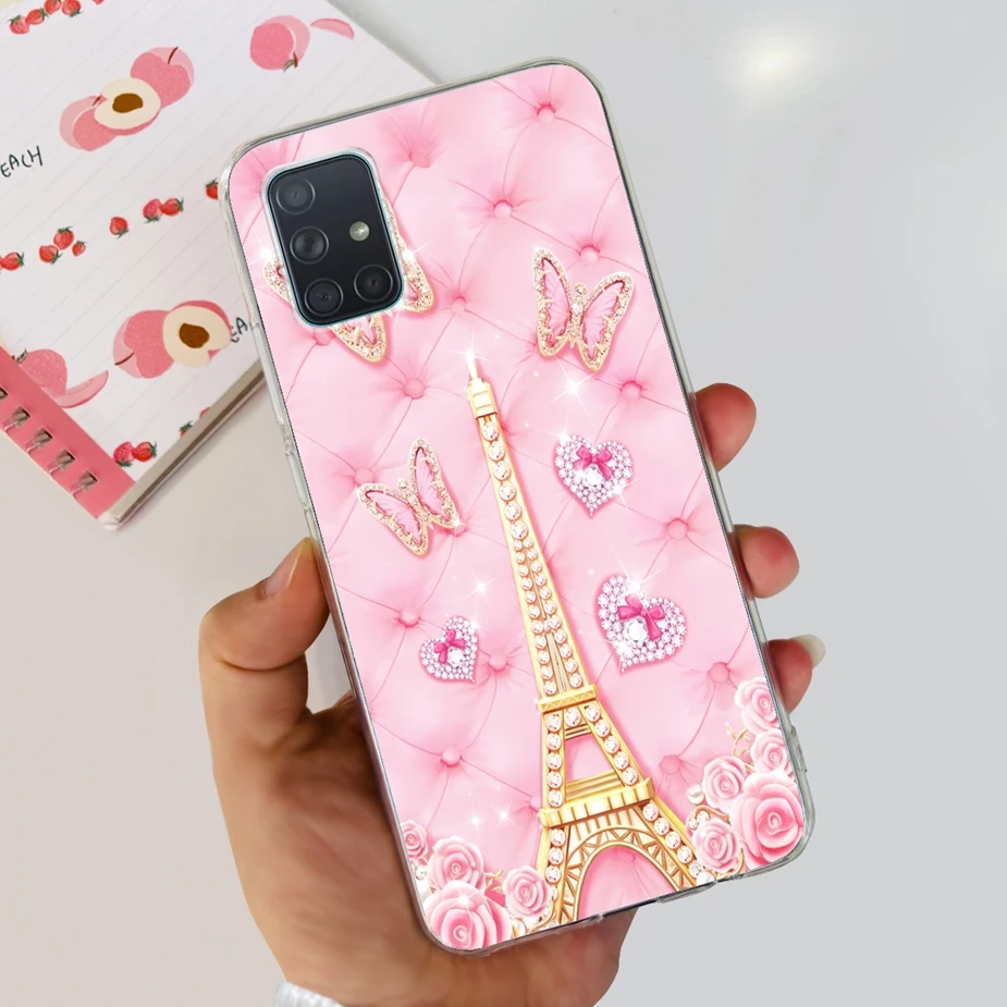 Comprar Para Samsung Galaxy A51 funda A71 funda pintada de lujo funda de teléfono de silicona transparente para Samsung Galaxy A71 A 51 A515F A715F bolsas suaves