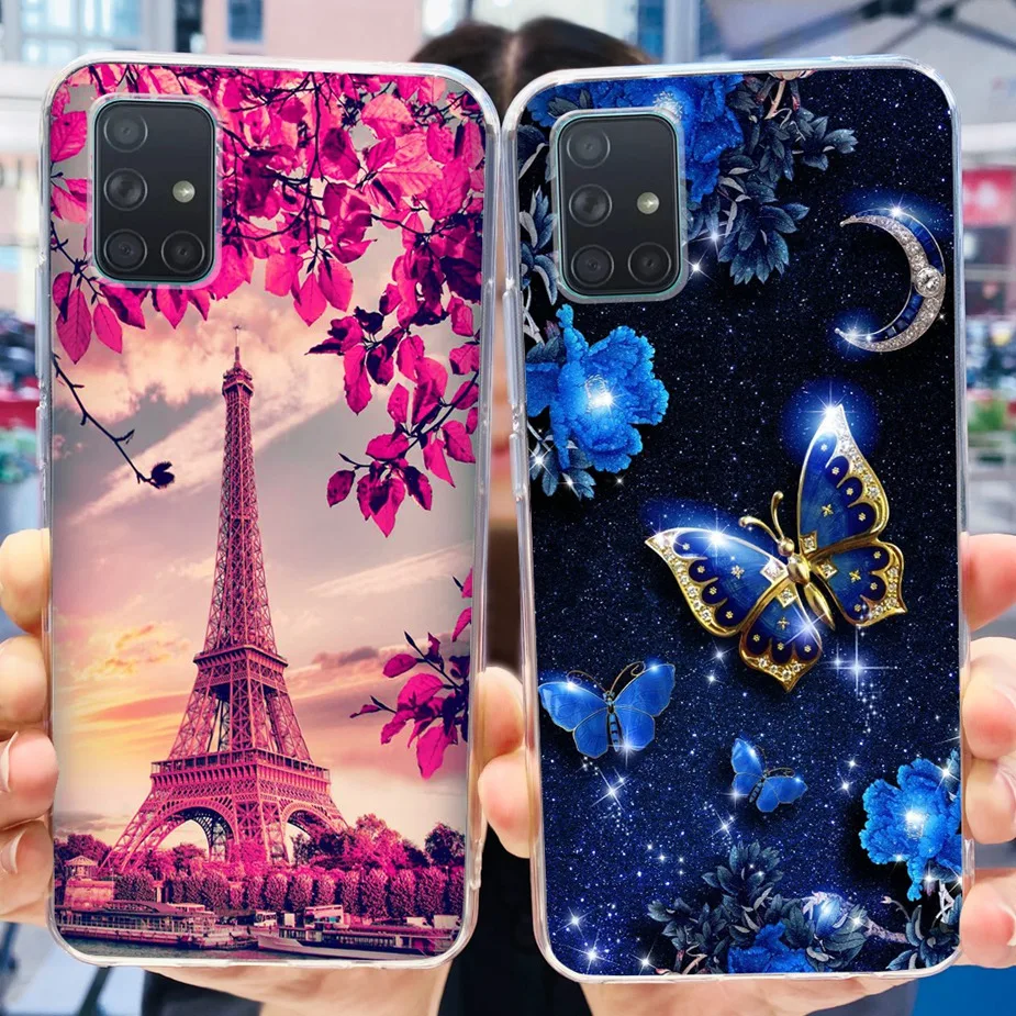 Comprar Para Samsung Galaxy A51 funda A71 funda pintada de lujo funda de teléfono de silicona transparente para Samsung Galaxy A71 A 51 A515F A715F bolsas suaves