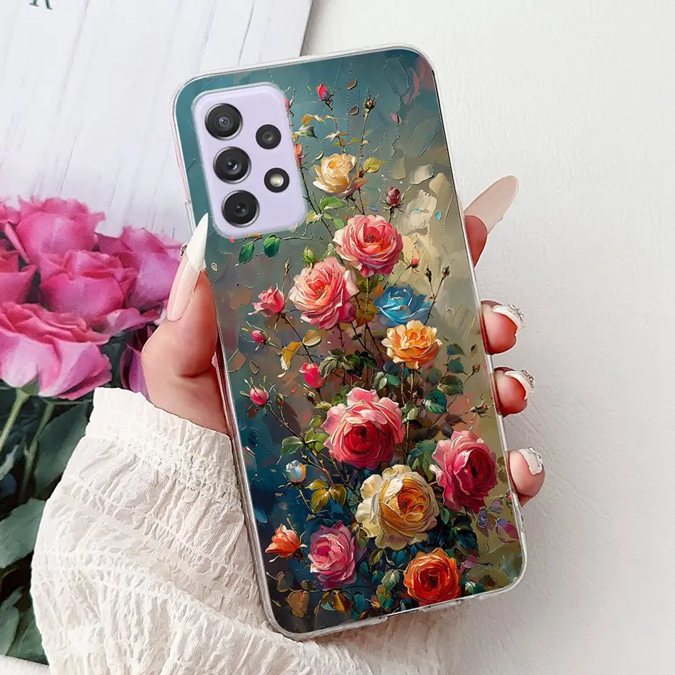 Detalle de productosPara Samsung Galaxy A52 A52s 5G funda SM-A526B SM-A528B funda de teléfono flor de moda funda de silicona suave para Samsung A72 A 52 parachoques