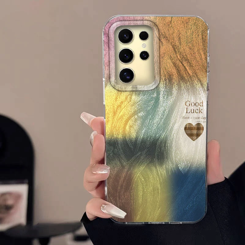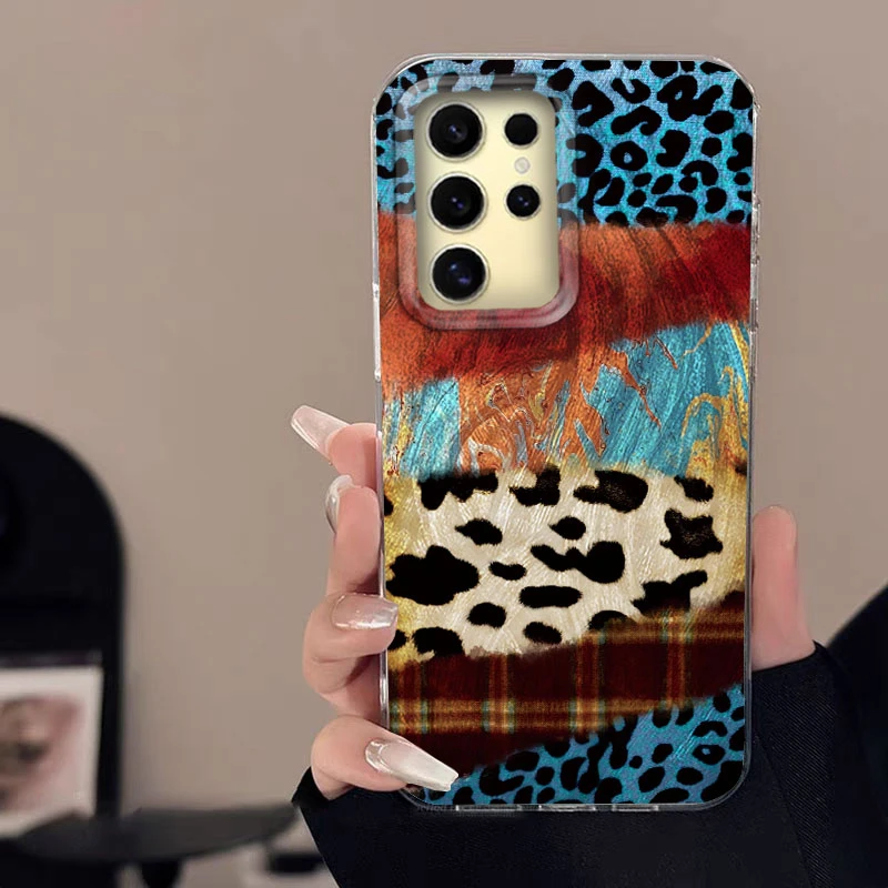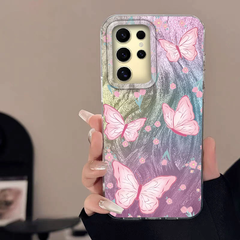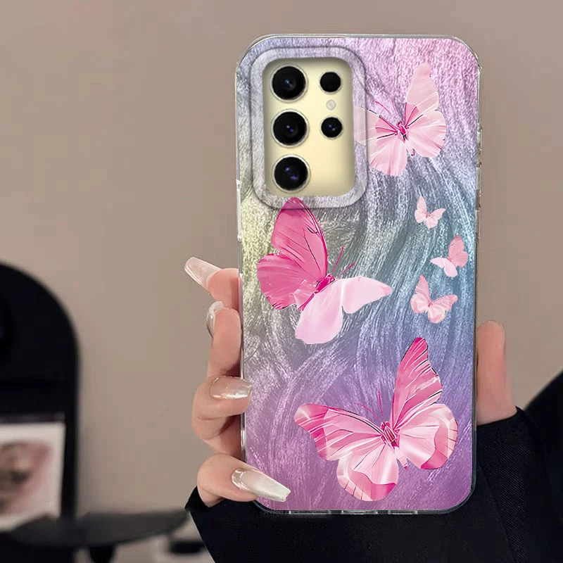 Para Samsung Galaxy A56 A15 A25 A55 A35 A16 A26 A36 S24 S25 Plus Ultra 5G funda de teléfono gasa de plumas cubierta de parachoques de mariposa arcoíris