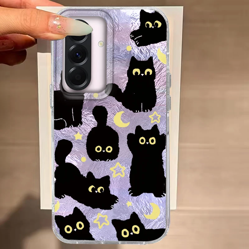 Para Samsung Galaxy A56 A55 A36 A16 A25 A35 A26 S25 S24 Plus Ultra FE 5G funda de teléfono gato dibujos animados gradiente patrón de vórtice cubierta de TPU