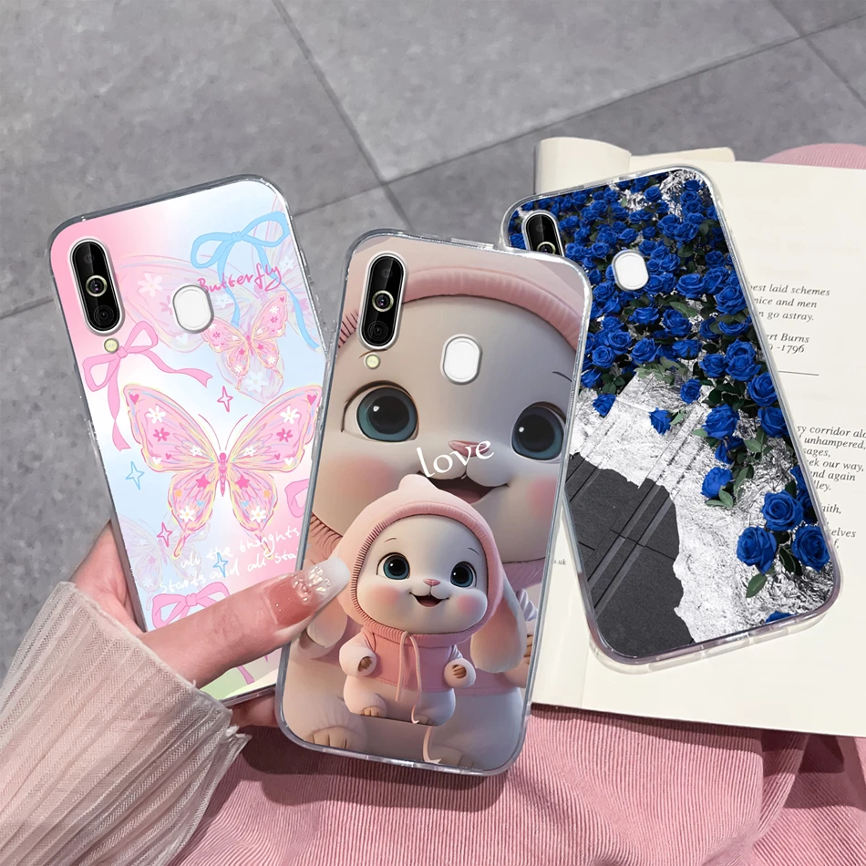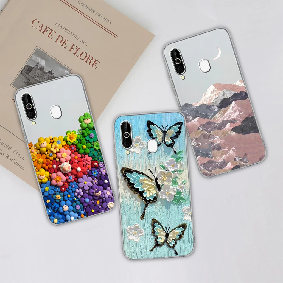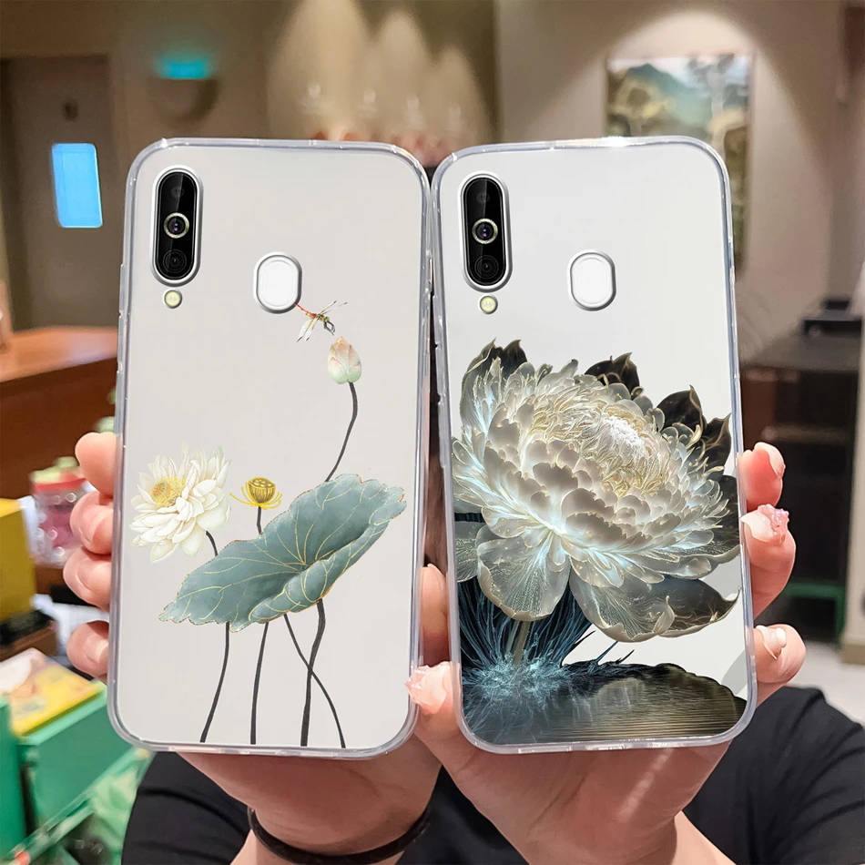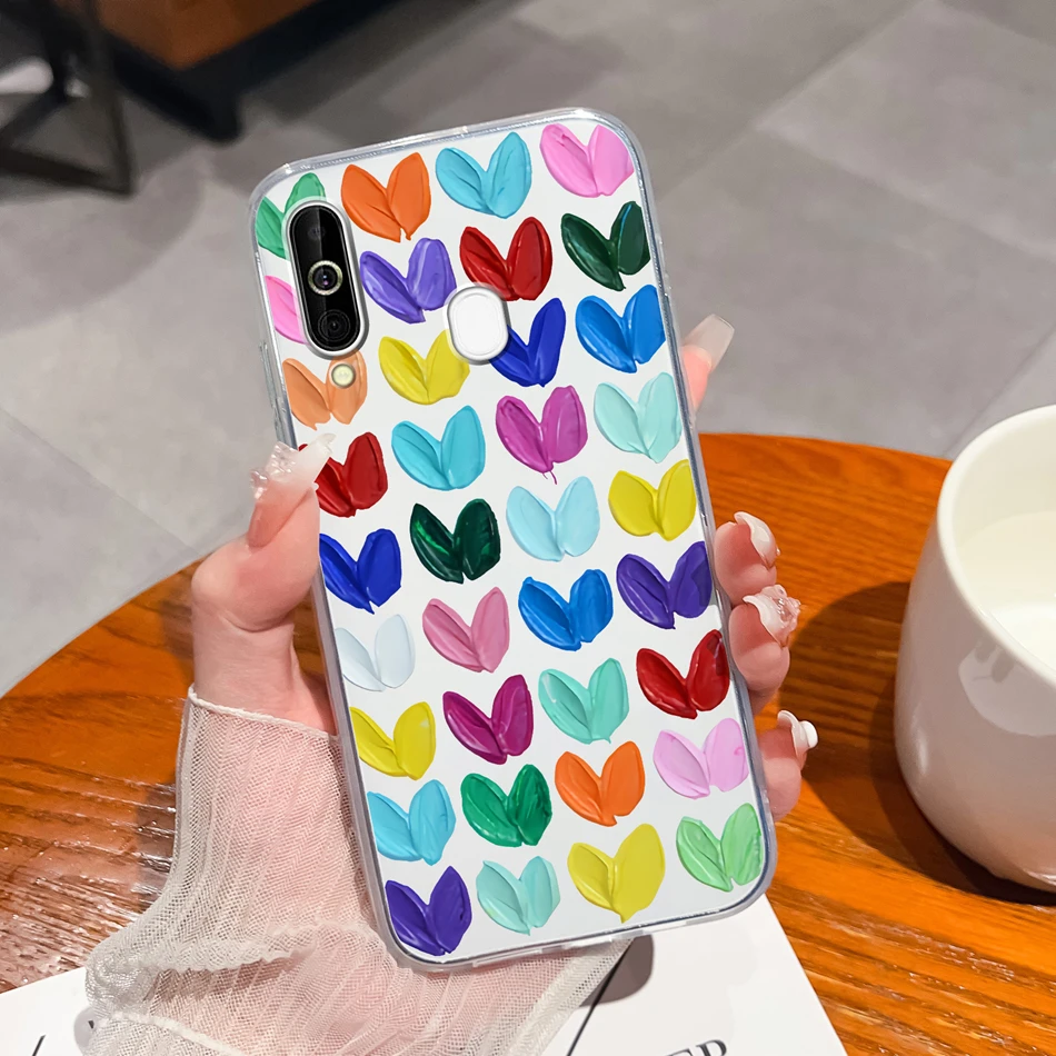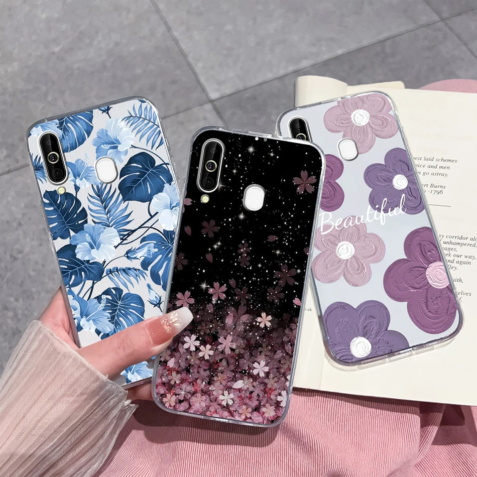 Para Samsung Galaxy A60 funda de teléfono patrones de flores coloridas suave delgada TPU carcasa de silicona transparente para Samsung A 60 parachoques