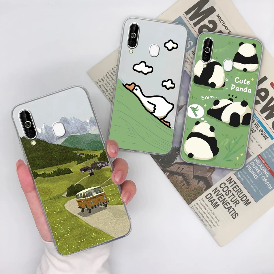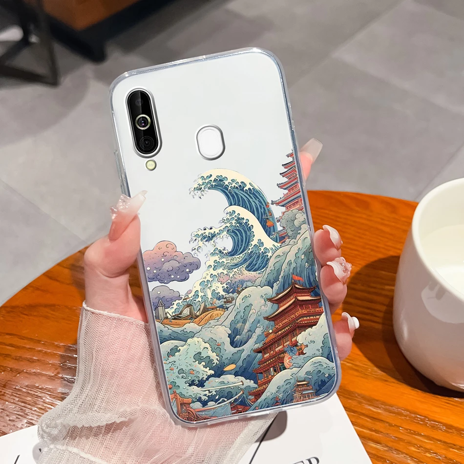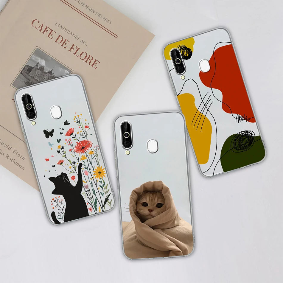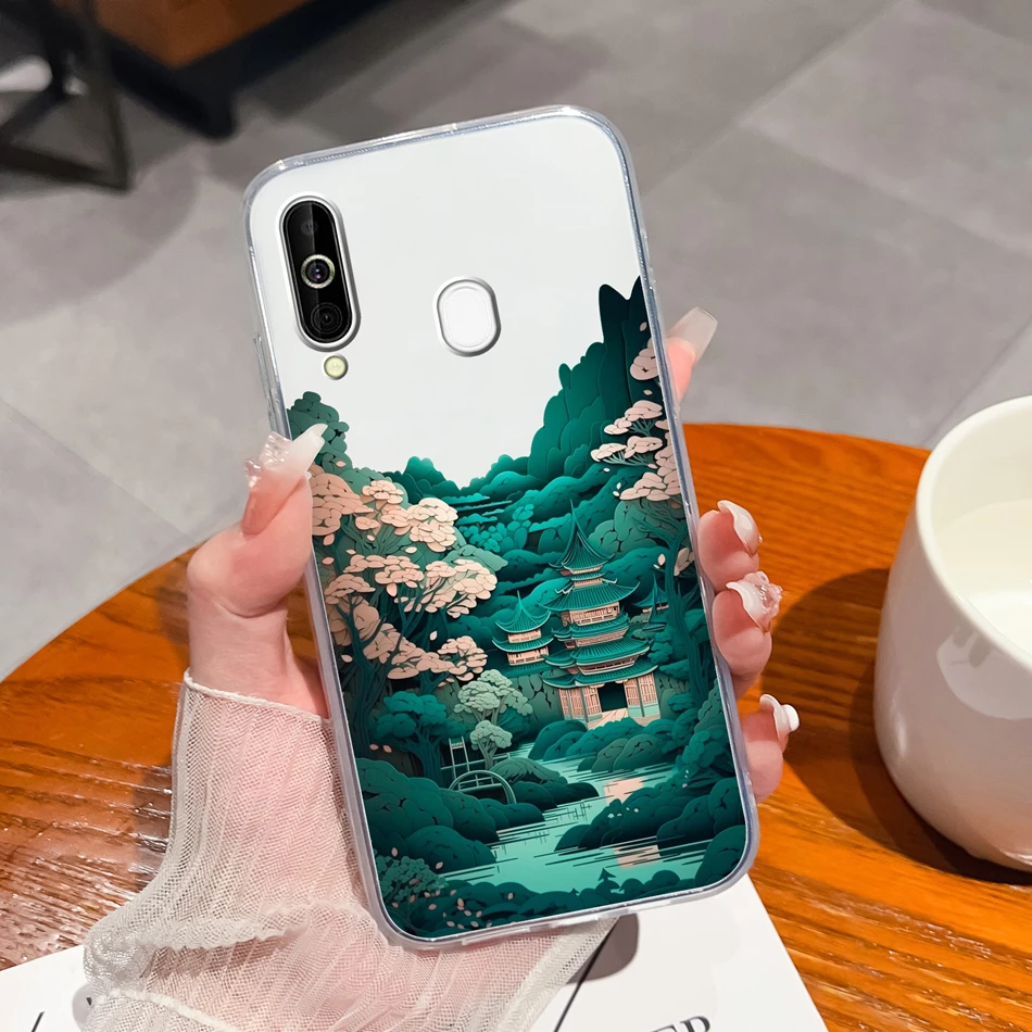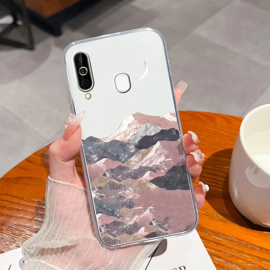Para Samsung Galaxy A60 funda de teléfono patrones de flores coloridas suave delgada TPU carcasa de silicona transparente para Samsung A 60 parachoques