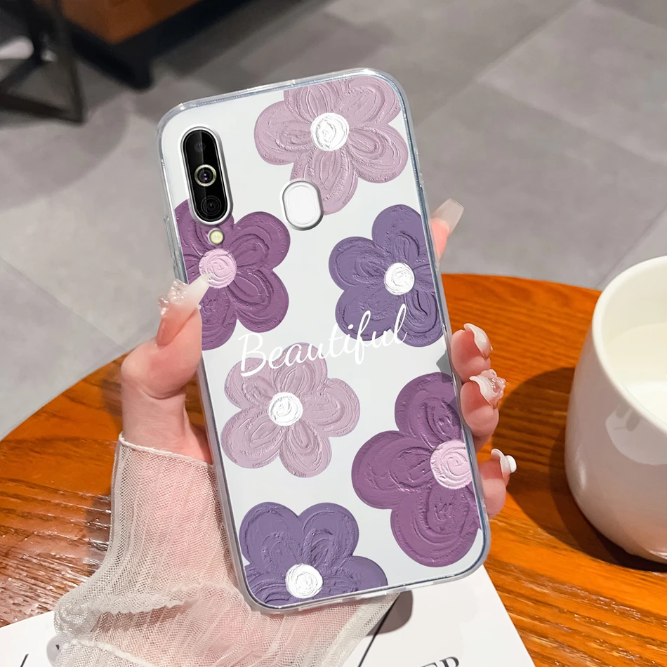Comprar Para Samsung Galaxy A60 funda de teléfono patrones de flores coloridas suave delgada TPU carcasa de silicona transparente para Samsung A 60 parachoques