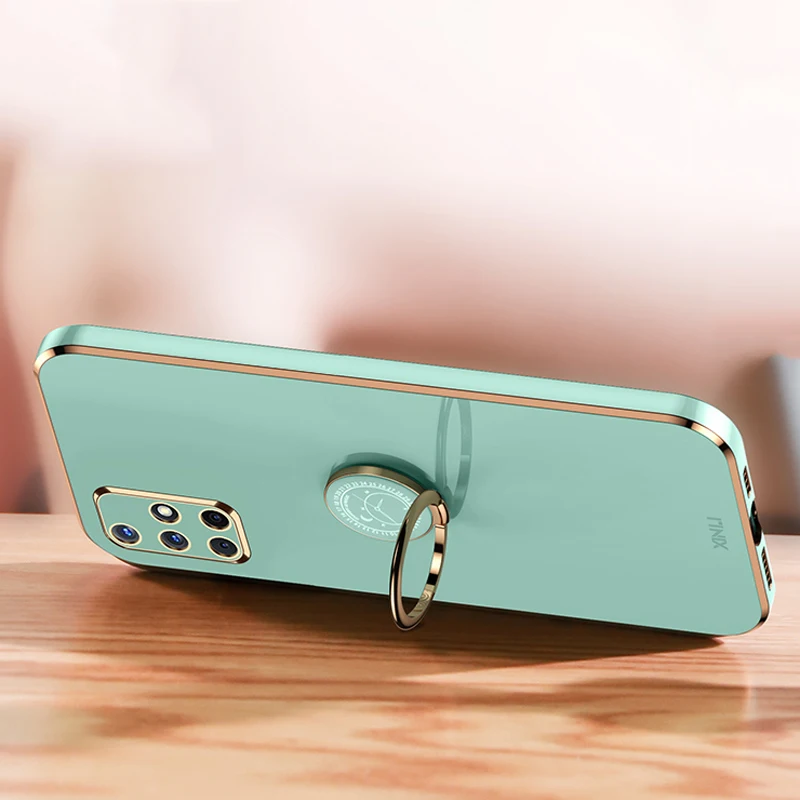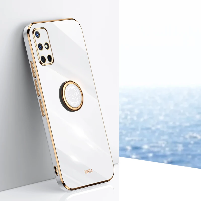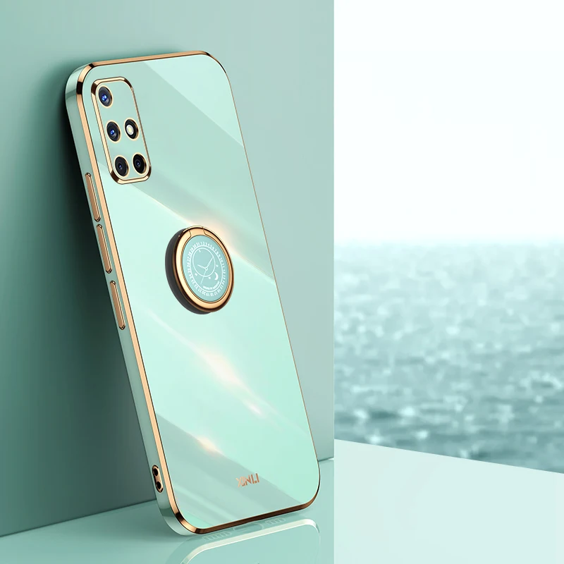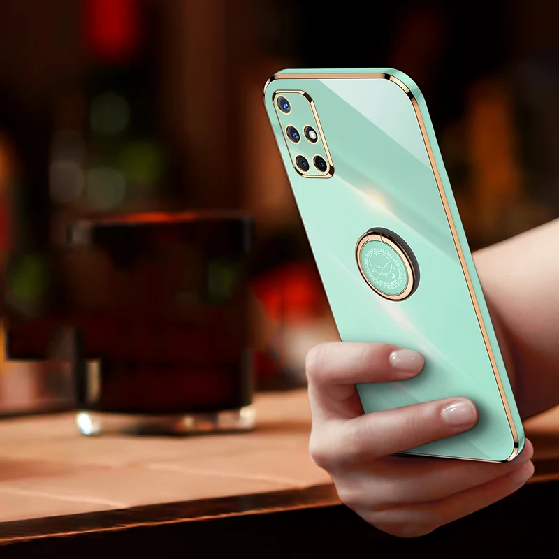 Comprar Para Samsung Galaxy A71 A51 4G 5G funda Samsung A71 funda de teléfono Galaxy A51 contraportada de lujo cuadrado chapado anillo soporte funda