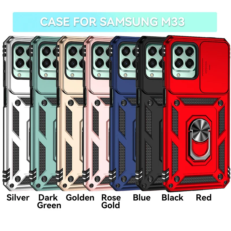 Comprar Para Samsung Galaxy M33 M53 M23 5G Funda deslizante lente de cámara Funda para Samsung M13 4G M 23 33 53 soporte de anillo magnético cubierta protectora
