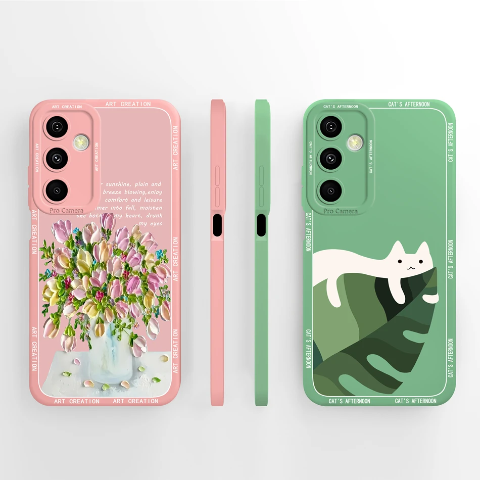 Comprar Para Samsung Galaxy M35 5G funda de teléfono plantas simples carcasa de protección de cámara para Samsung M 35 contraportada parachoques de silicona líquida