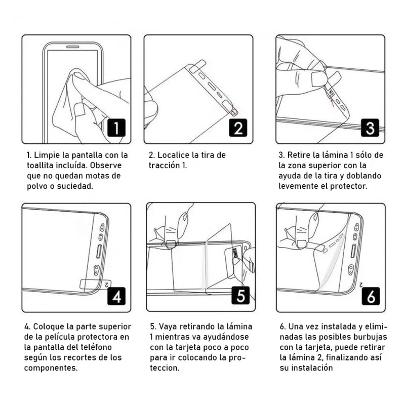 A diferencia del vidrio templado y otros protectores de pantalla, este protector de hidrogel cubre toda la pantalla incluso cubre sus esquinas y bordes curvos para su protección total.