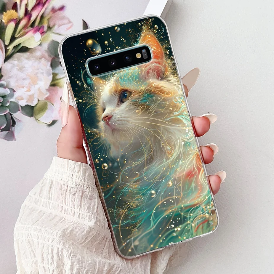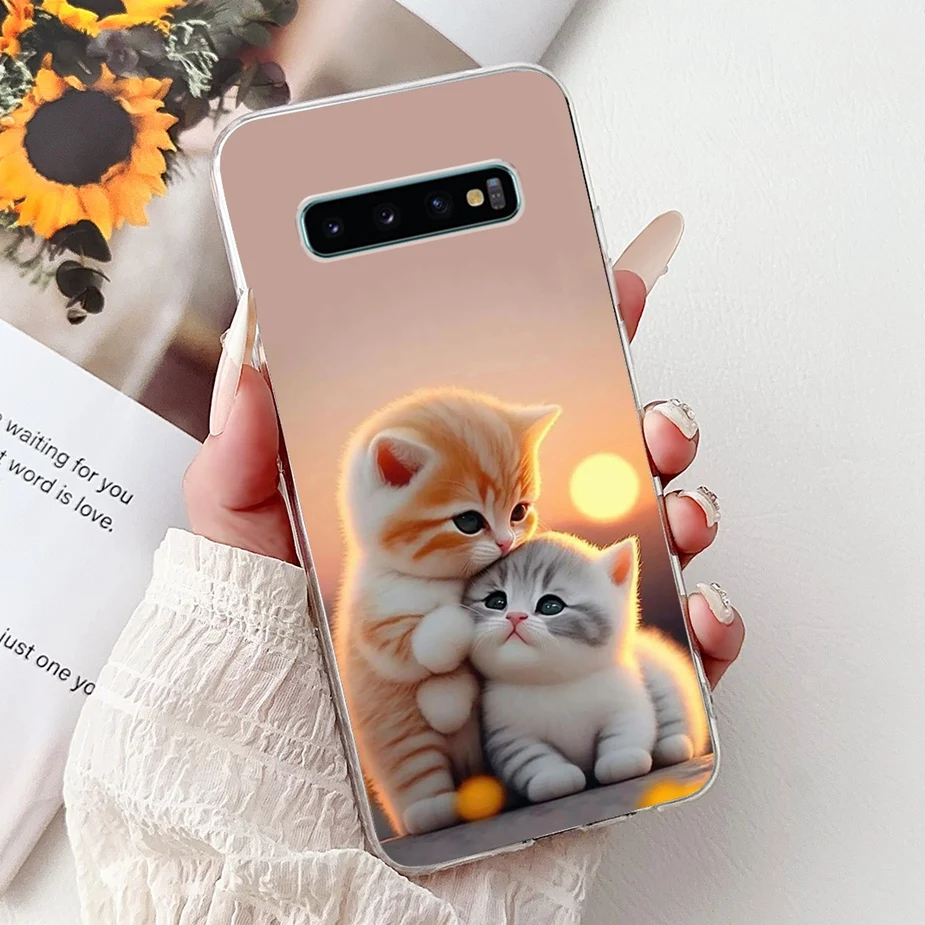 Para Samsung Galaxy S10 S10e S10 + funda bonita de gato funda pintada de lujo funda de teléfono de silicona suave para Samsung S10 Plus S 10 S10e bolsas