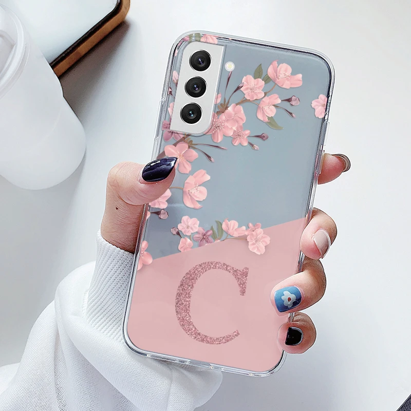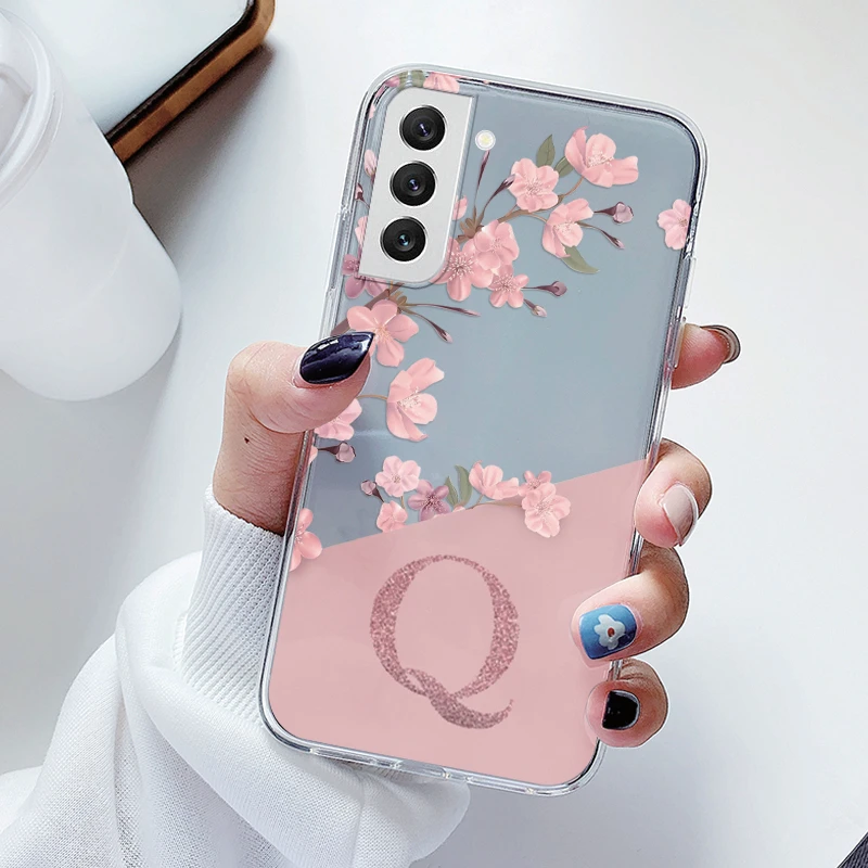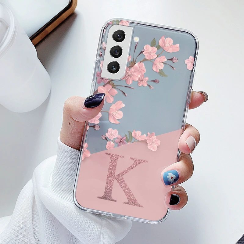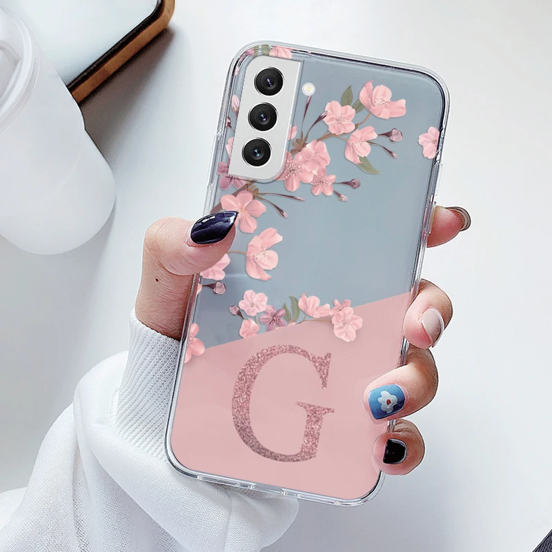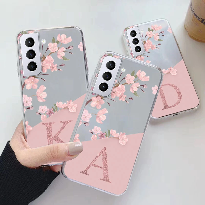 For Samsung Galaxy S21 S 21 FE S21 Fan Edition Case Soft Slim Luxury A-Z Letters Back Cover Funda Clear Bumper Transparent Shell