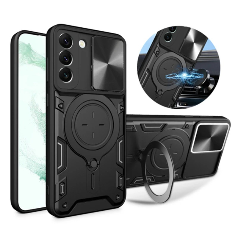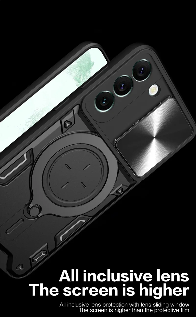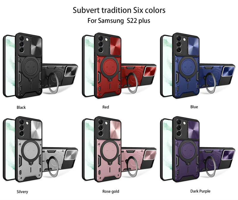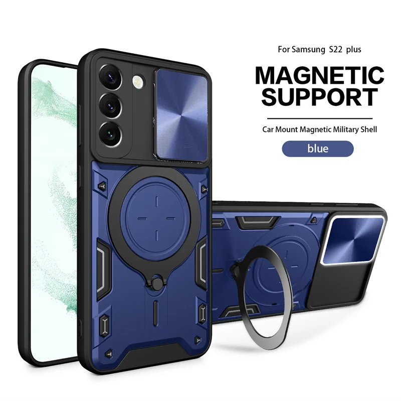 Comprar Para Samsung Galaxy S22 Plus funda con anillo de Metal soporte magnético funda protectora para Galaxy S 22 S22 lente Ultra deslizante cubierta protectora para cámara