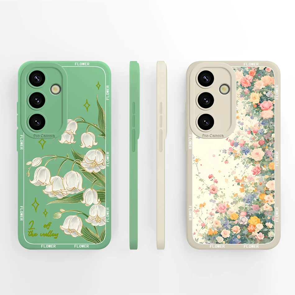 Comprar Para Samsung Galaxy S24 FE Plus Ultra Funda flores silicona líquida suave contraportada Anti caída fundas de teléfono para Samsung S 24 Funda