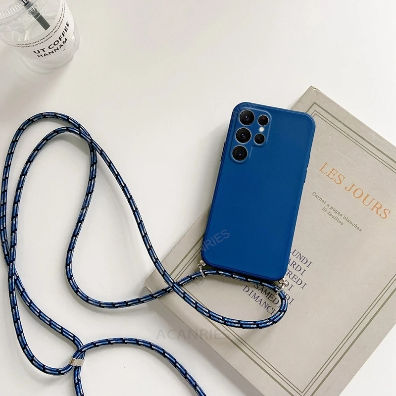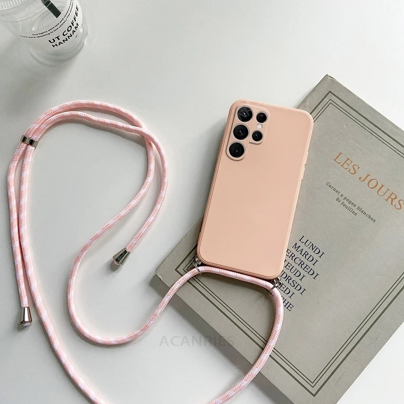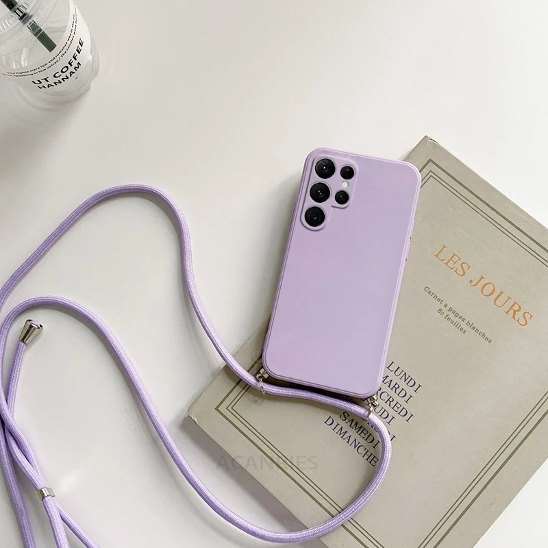 Comprar Para Samsung Galaxy S24 Plus Ultra S23 FE S22 S21 5g collar cruzado correa cordón funda de silicona líquida en S24Ultra S 24
