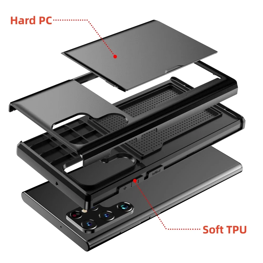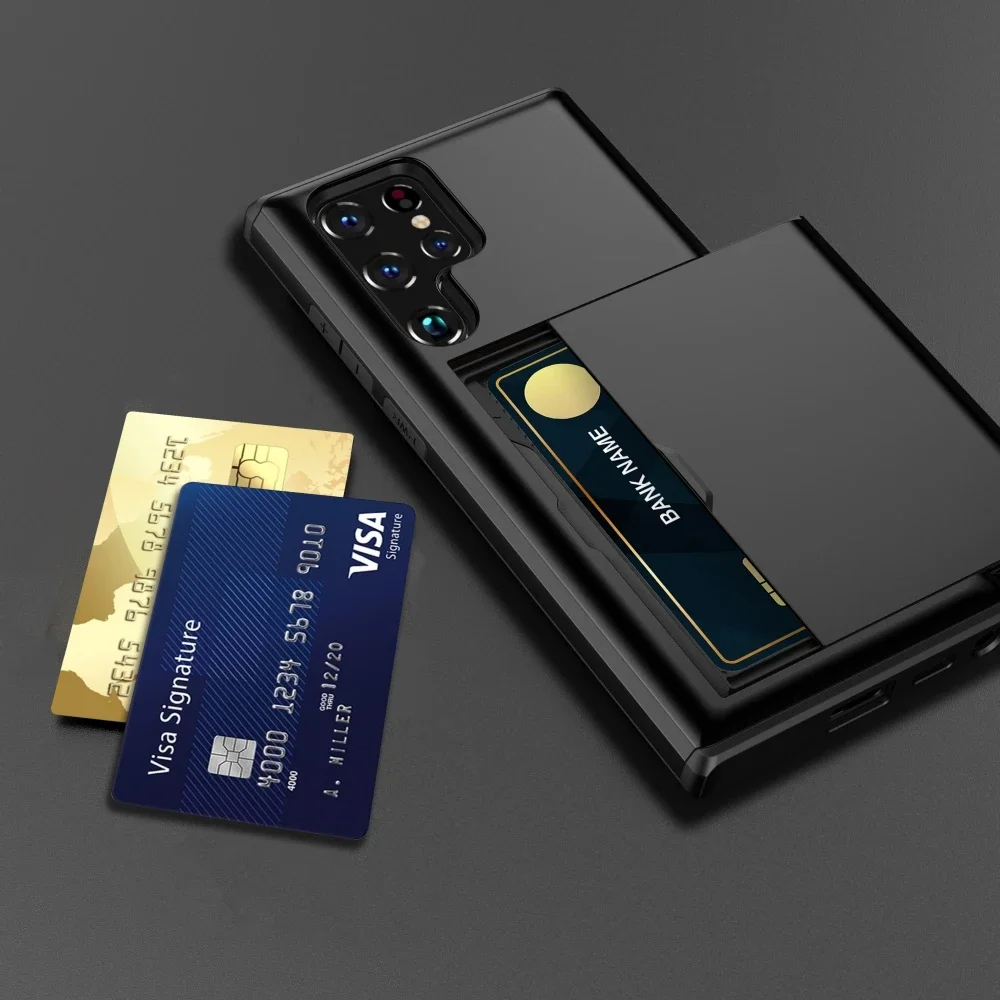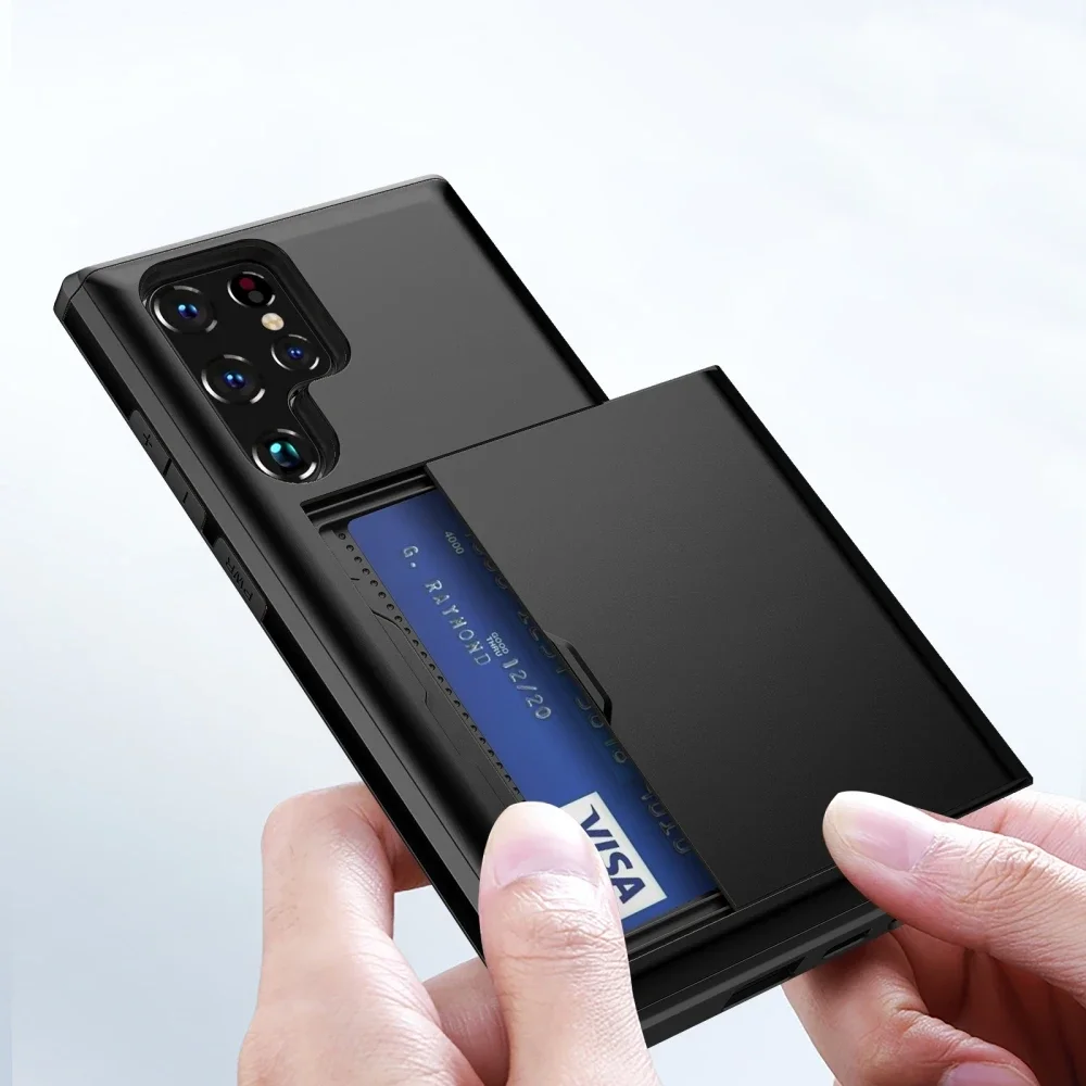 Para Samsung Galaxy S24 Ultra S23 S21 S20 FE S22 Plus funda Slide Armor cartera ranura para tarjeta para Galaxy Note 20 Ultra S24 + funda