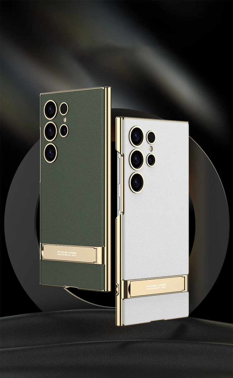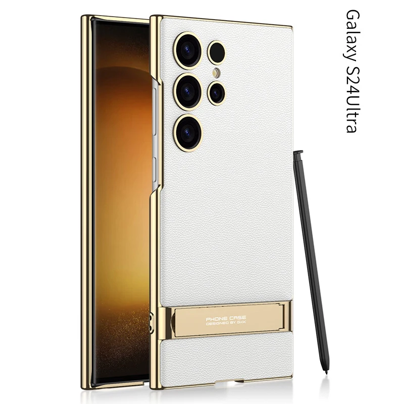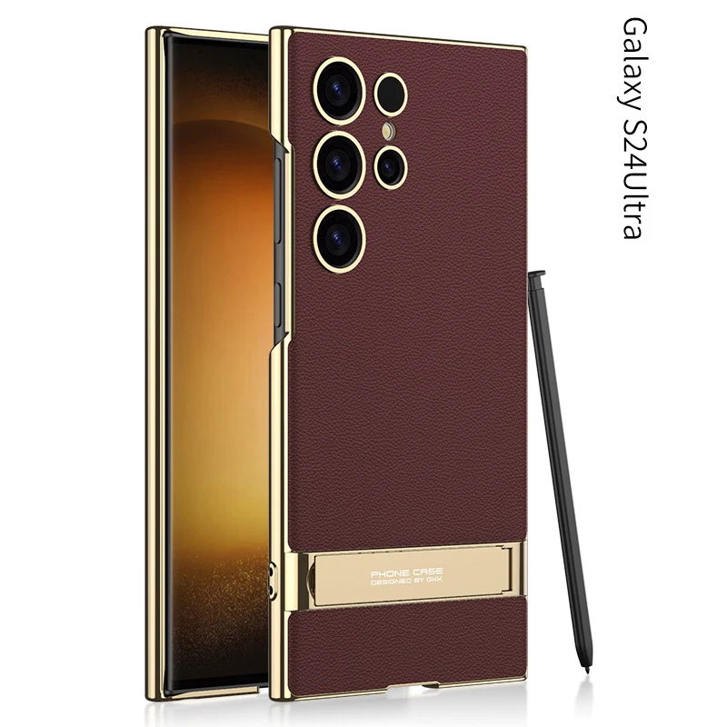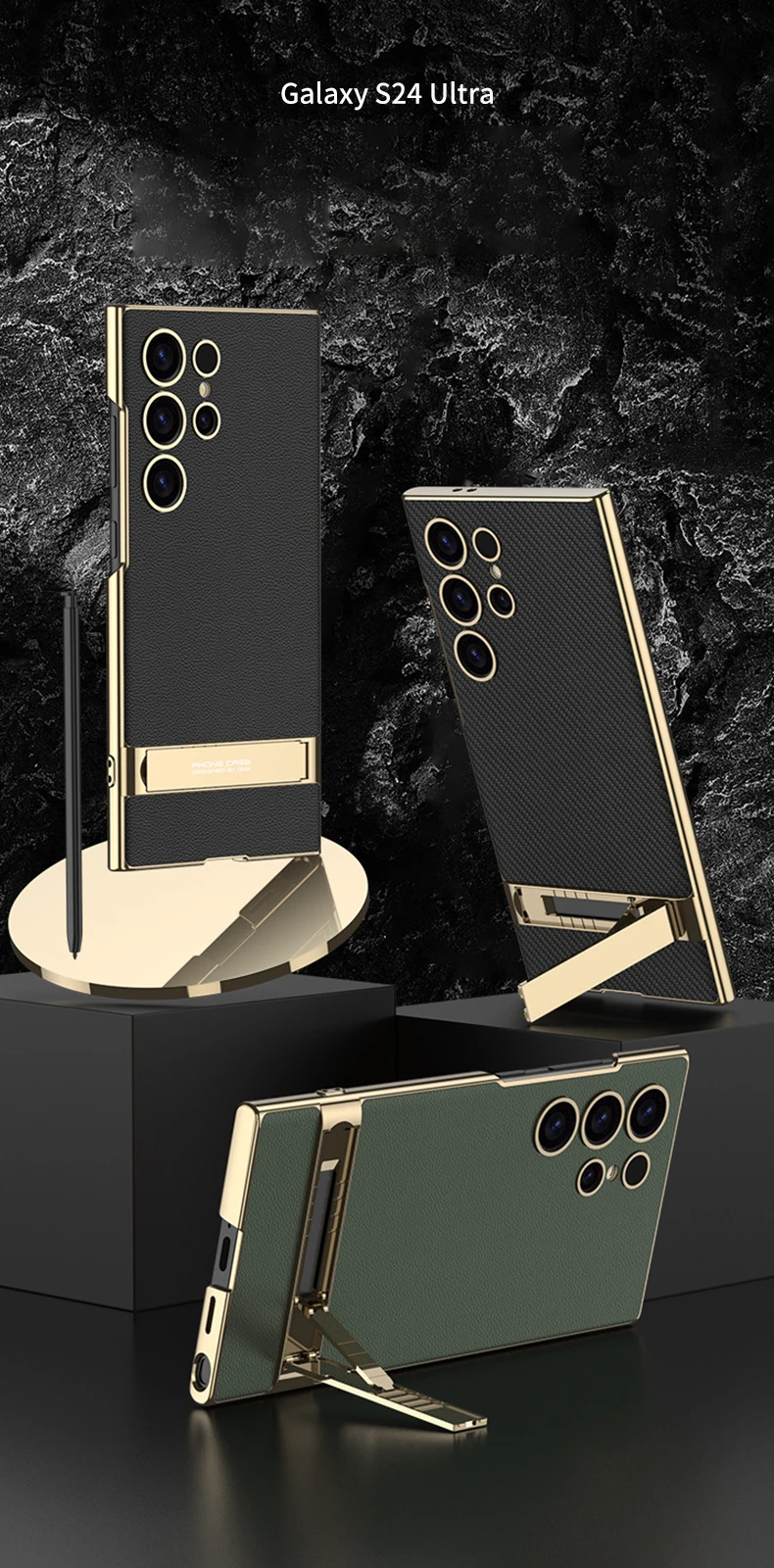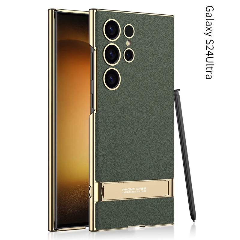 Comprar Para Samsung Galaxy S24U S25Ultra galvanizado cuero vegano soporte funda de teléfono soporte mecánico ajustable funda de teléfono de negocios