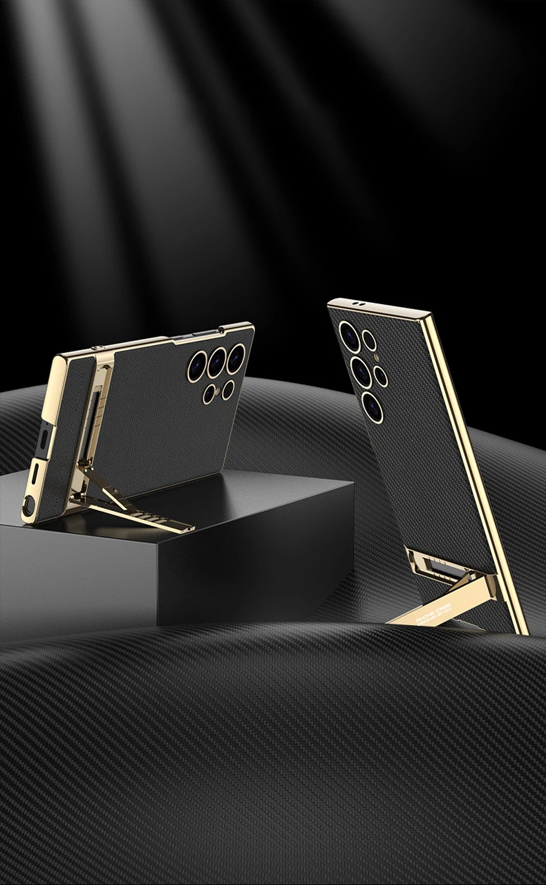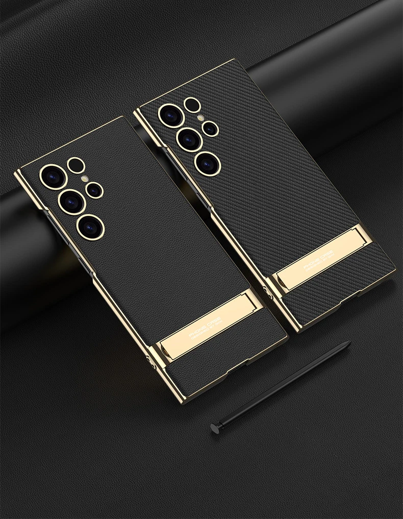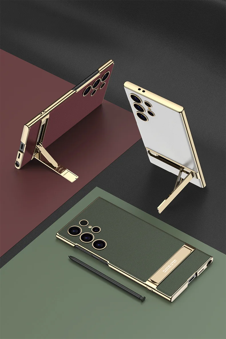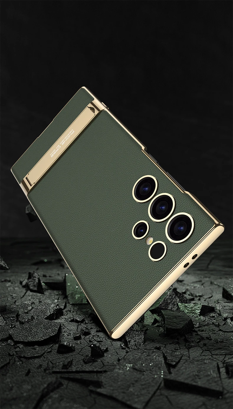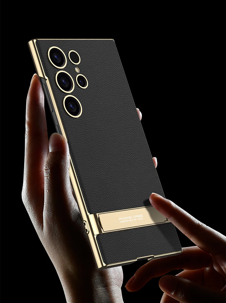 Comprar Para Samsung Galaxy S24U S25Ultra galvanizado cuero vegano soporte funda de teléfono soporte mecánico ajustable funda de teléfono de negocios