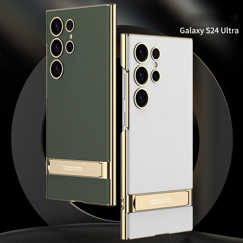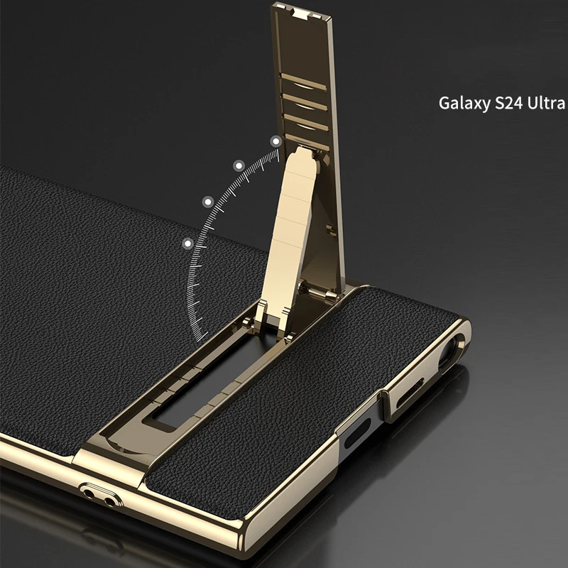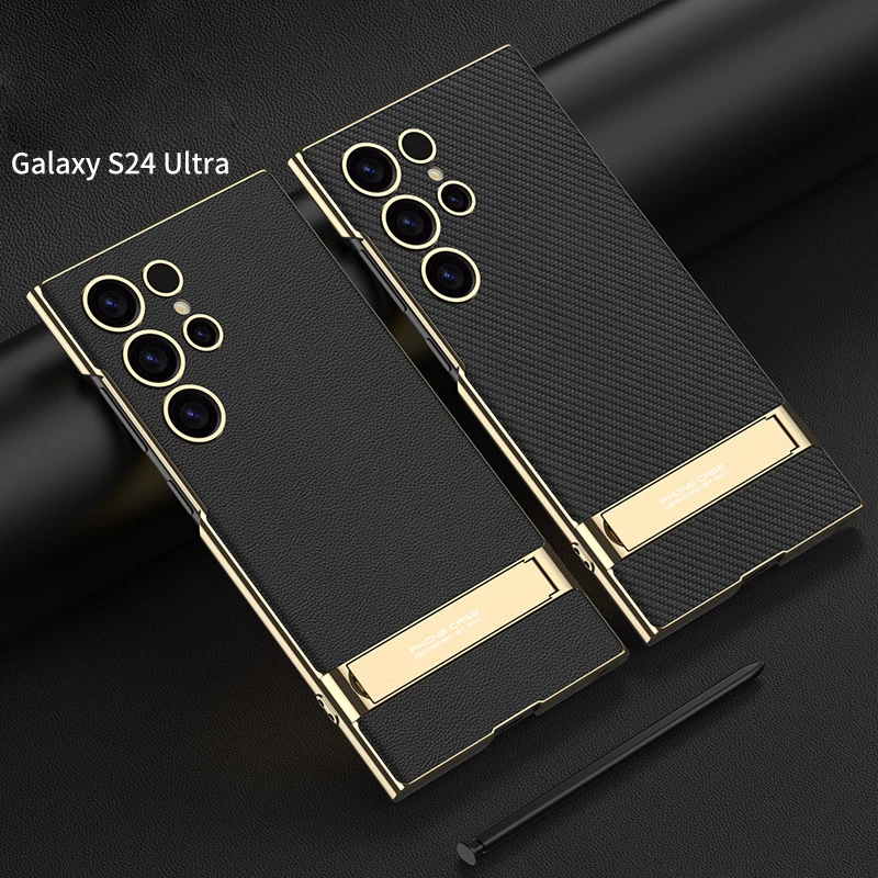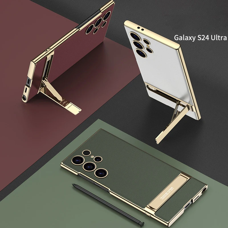 Comprar Para Samsung Galaxy S24U S25Ultra galvanizado cuero vegano soporte funda de teléfono soporte mecánico ajustable funda de teléfono de negocios