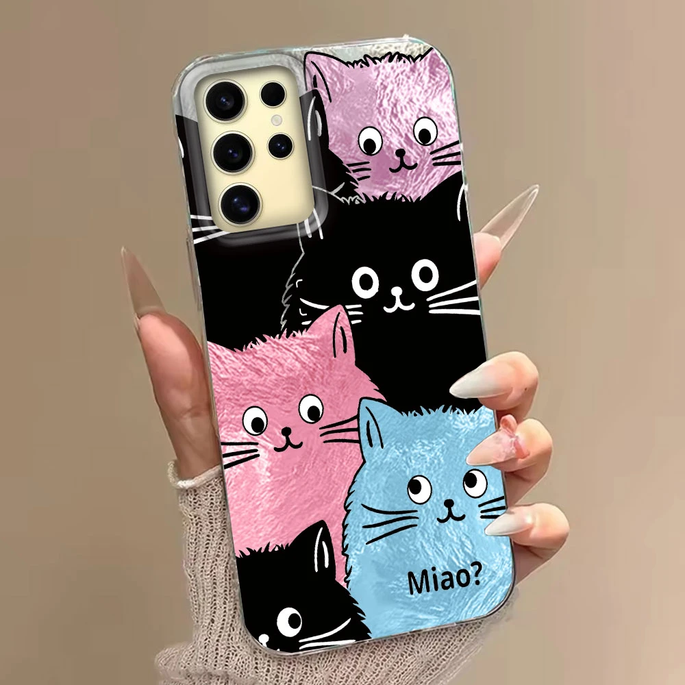 Para Samsung Galaxy S25 S24 S23 S22 S21 Plus Ultra S20 FE línea gato gradiente patrón de vórtice parachoques parte trasera dura funda de teléfono a prueba de golpes