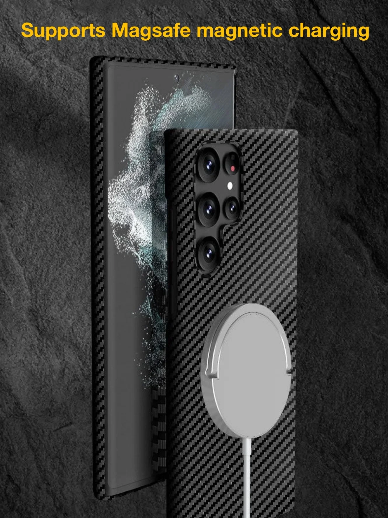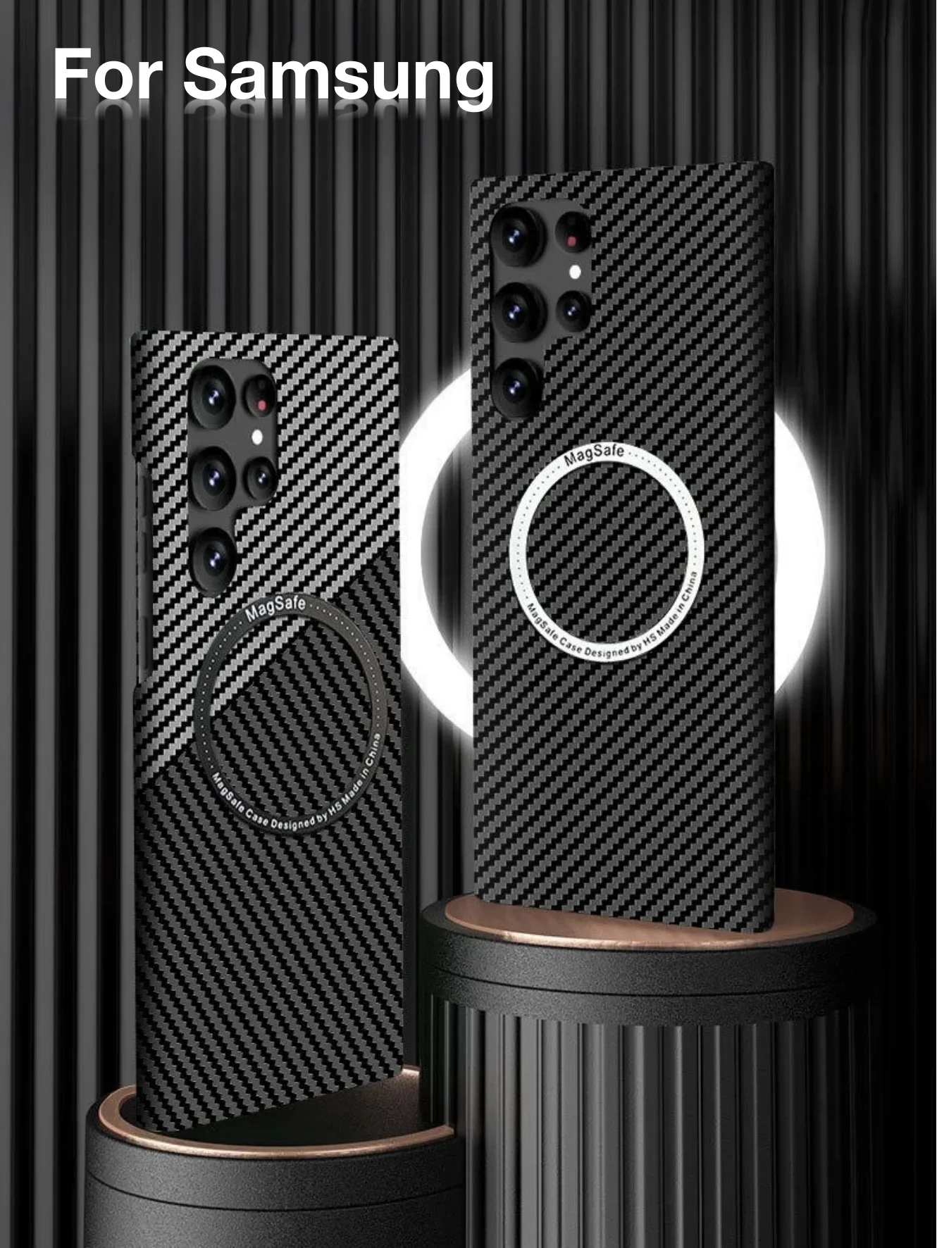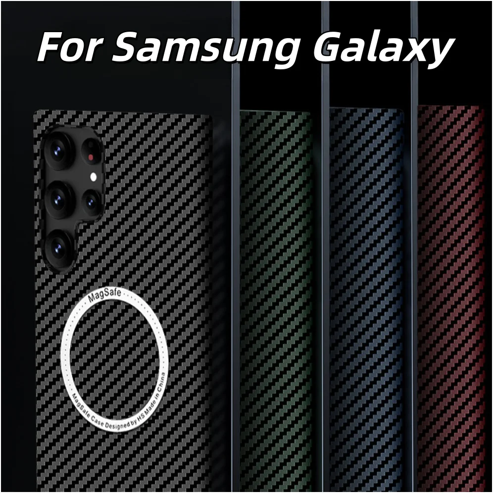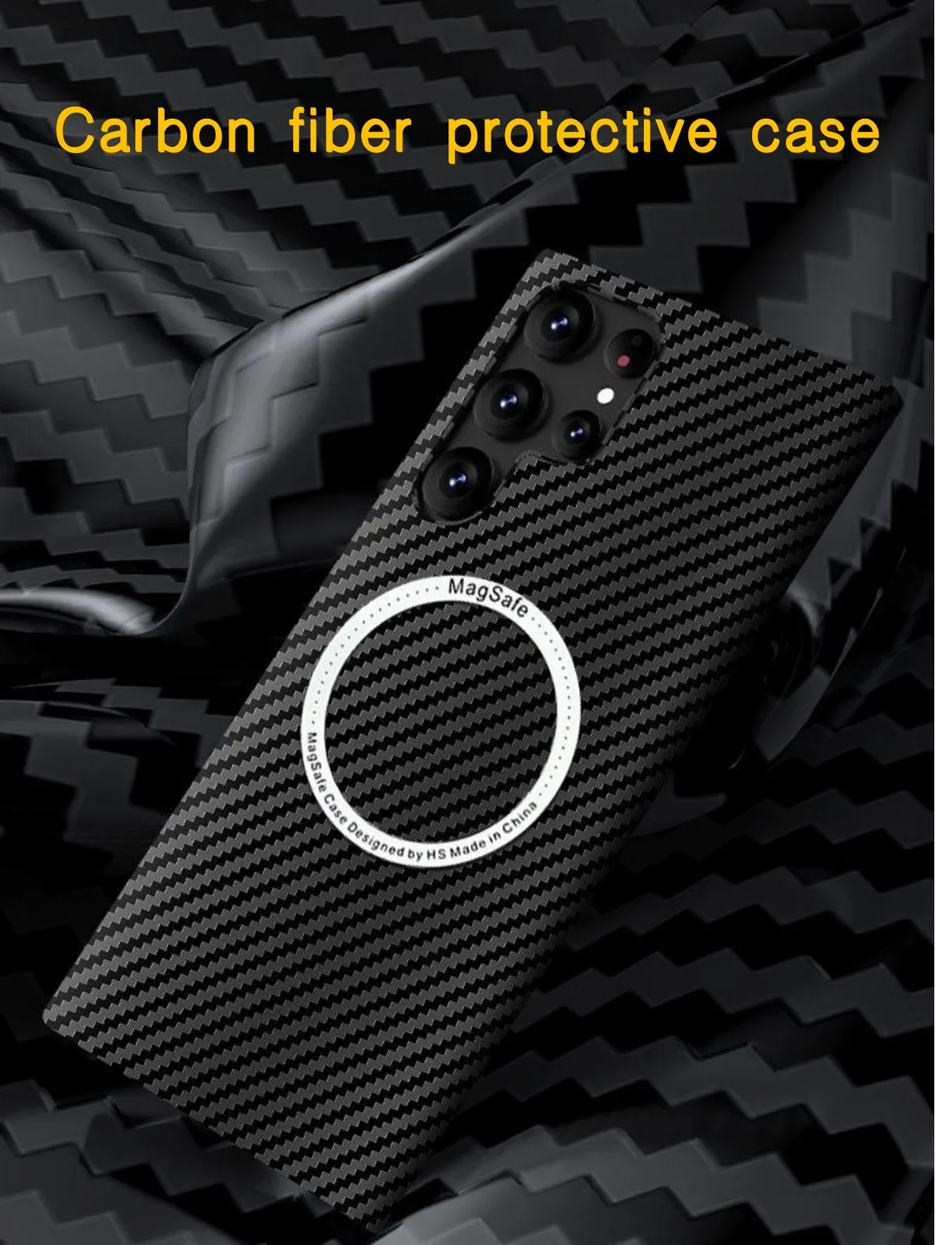 For Samsung Galaxy S25 S24 S23 S22 S21 Ultra Plus Case Bag Carbon Fiber Wireless Charging Soft Mag Safe Matte Shockproof Cover